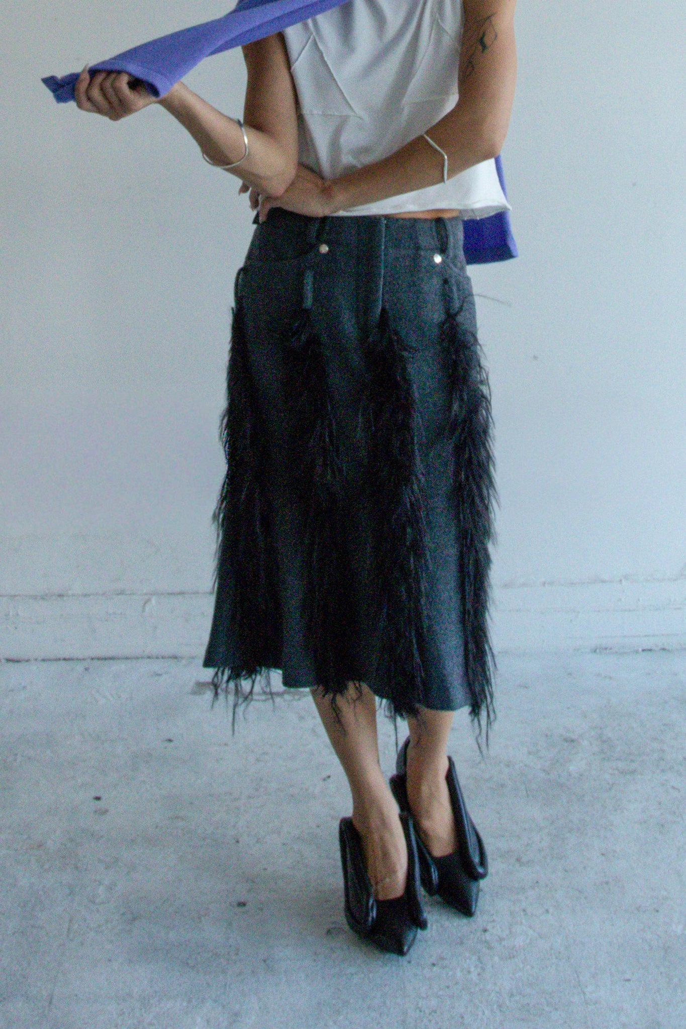 Shadowy Double Waist Line Skirt (Teal/Grey)