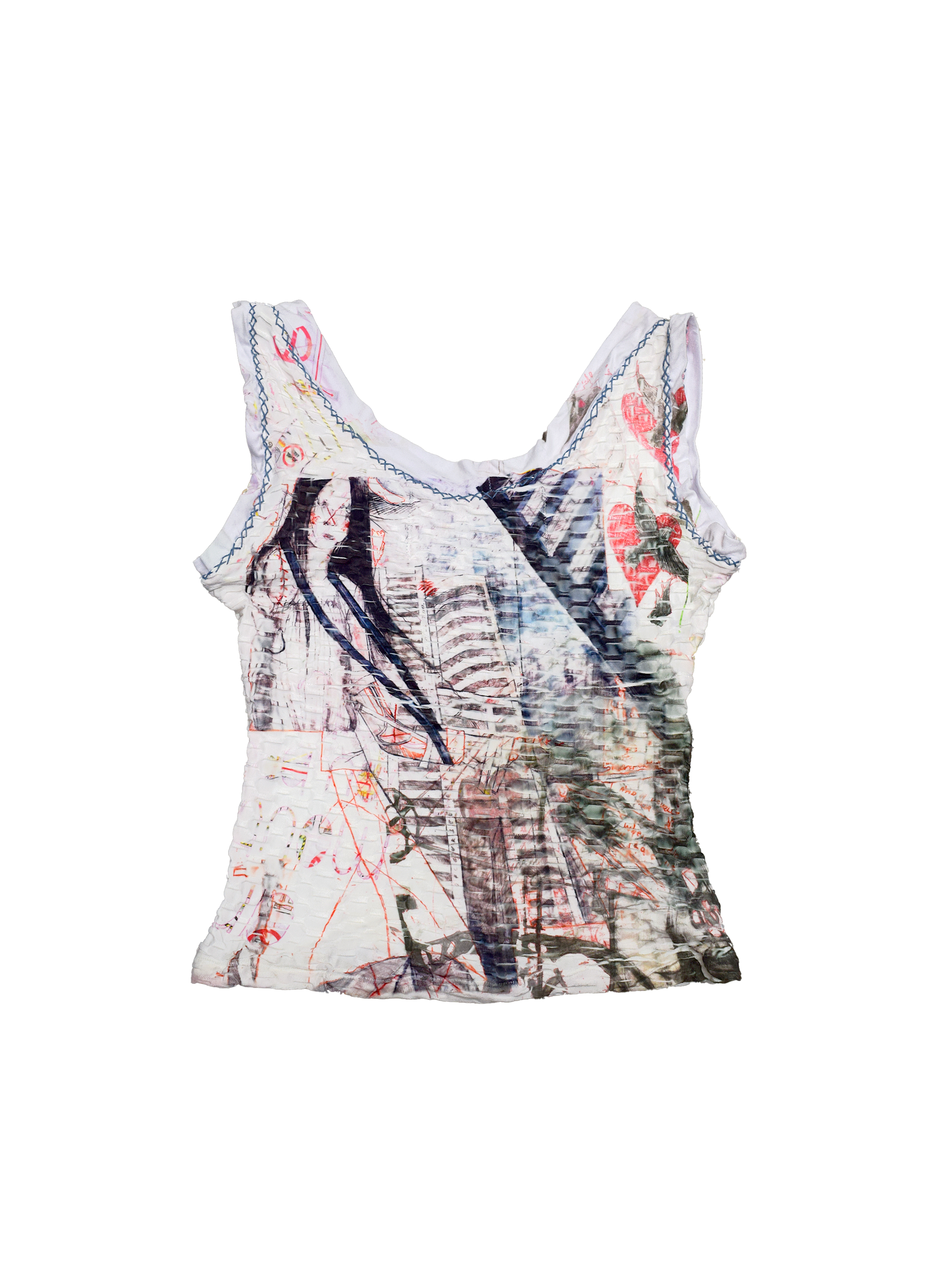 Camila Frater is a New York–based multimedia artist and designer creating loungewear that showcases her drawings and fine art. She combines dye sublimation, stenciling, and graphic design to blend 2D aesthetics with 3D form.