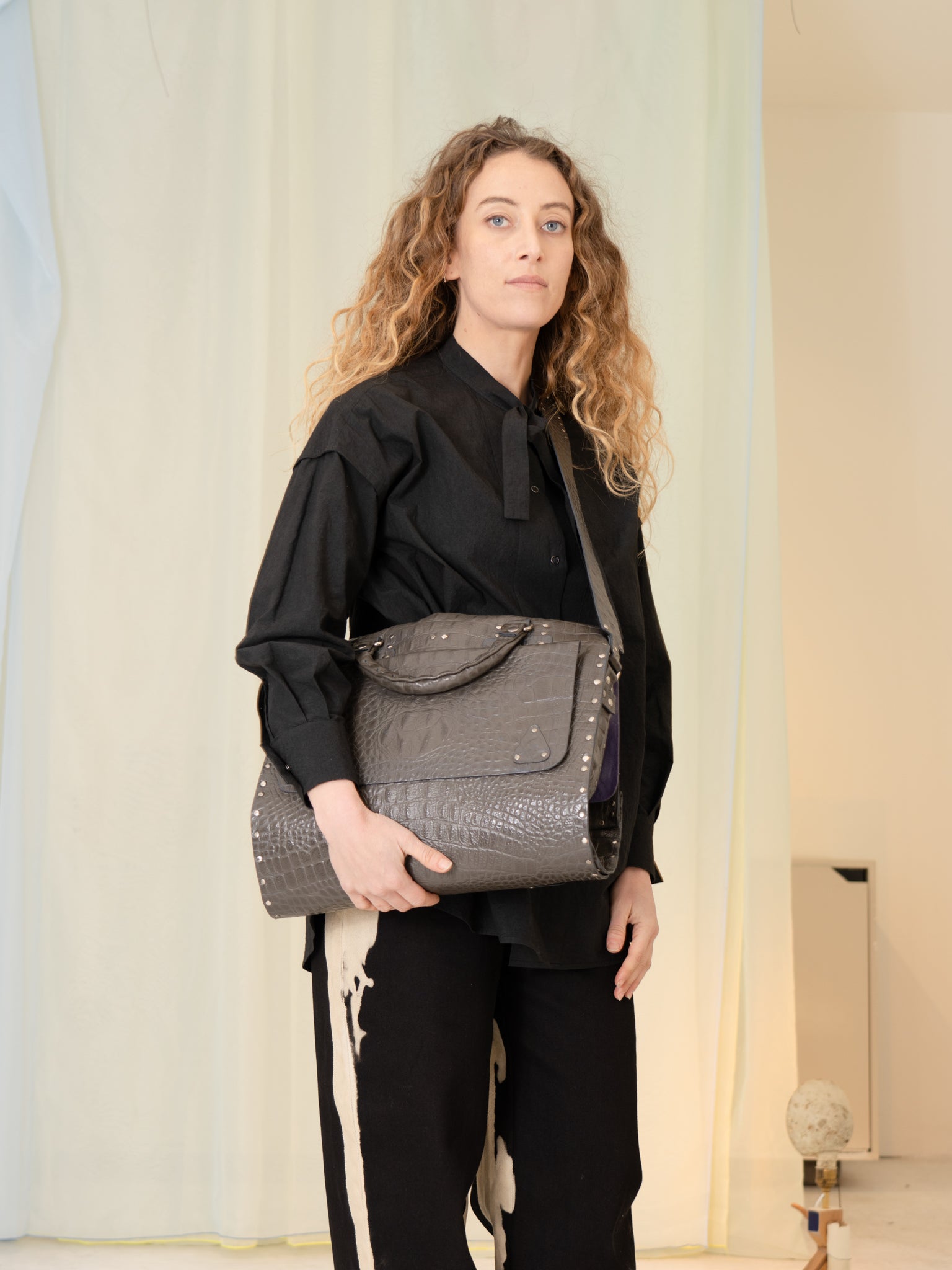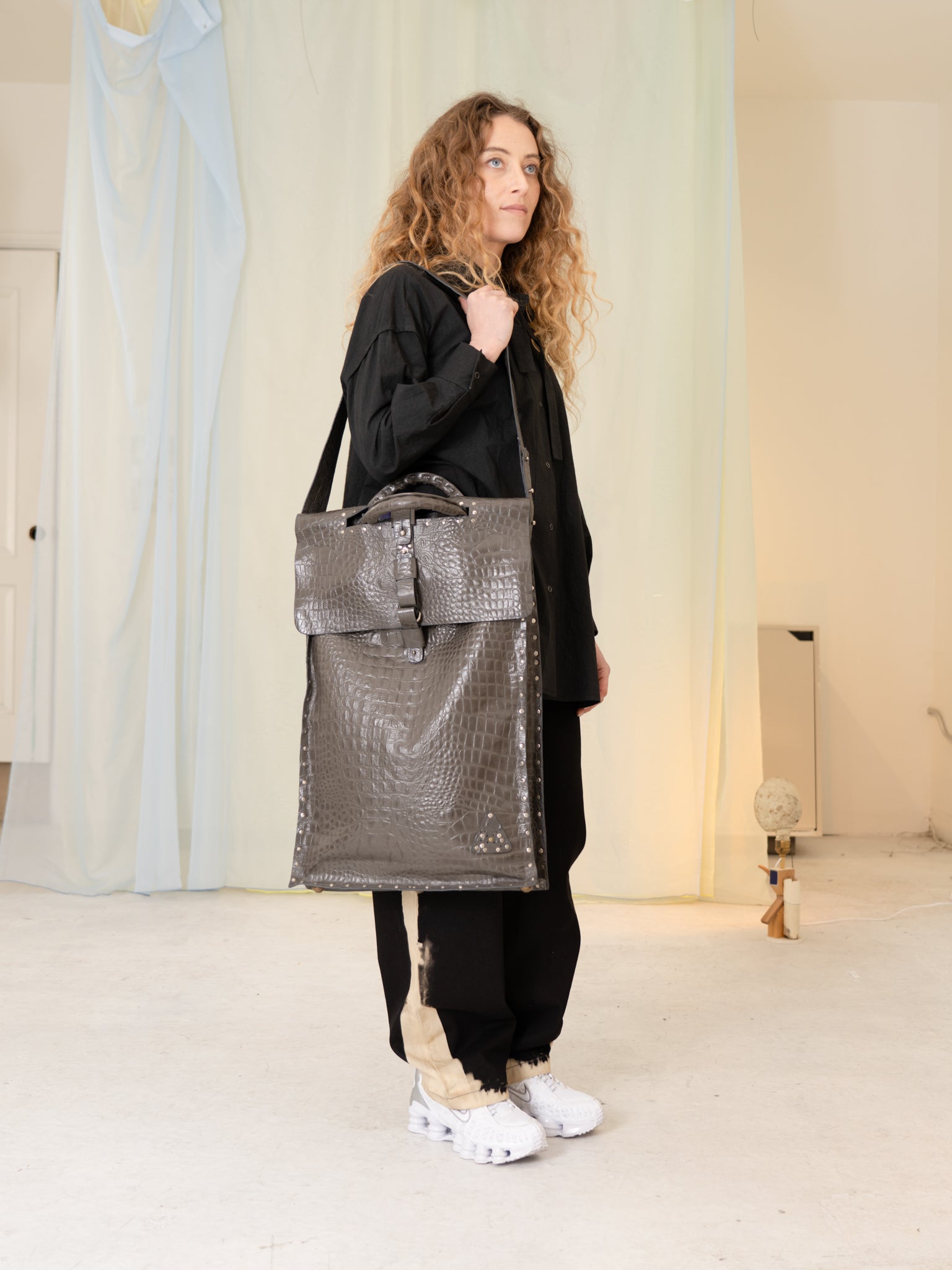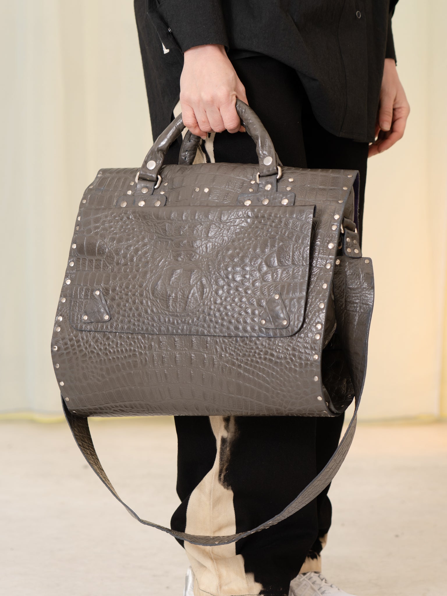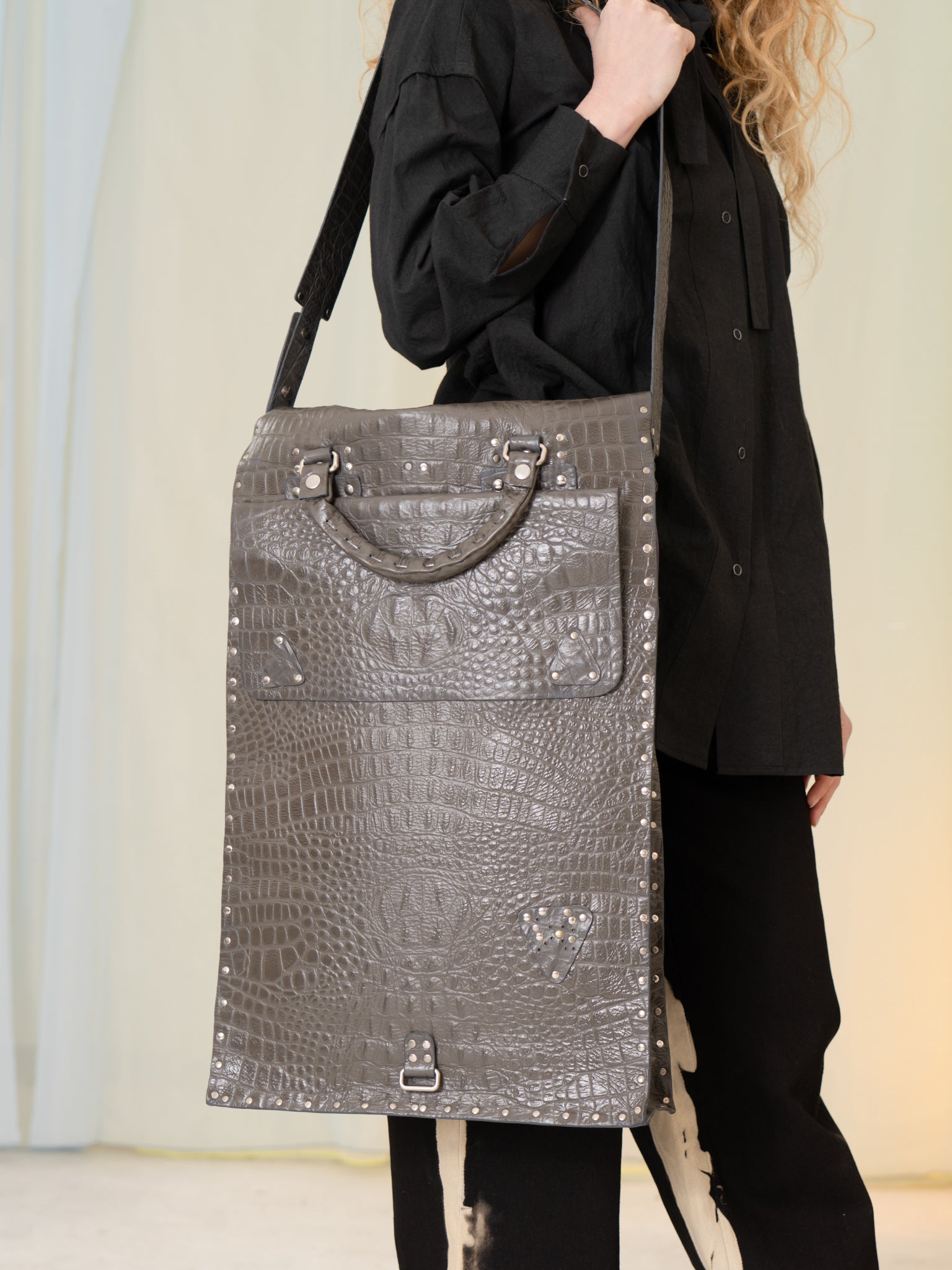 Le Joseph Foldable Leather Bag (Grey Croc)