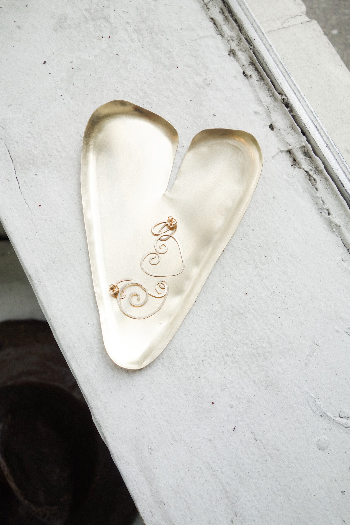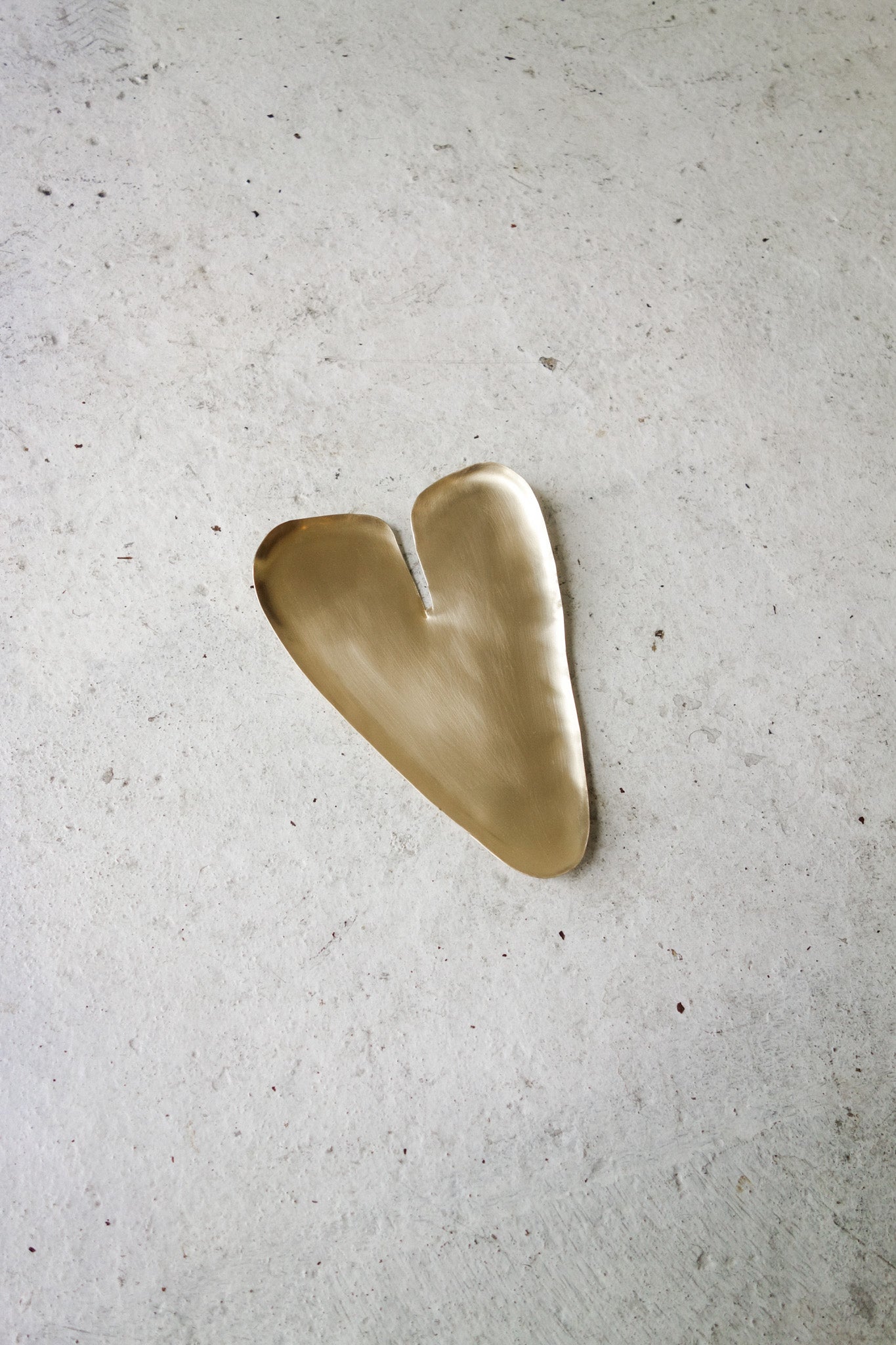 Hand forged brass plate by artist Tania Enriquez at her studio in Los Angeles, where she makes wearable objects and objects for resting.