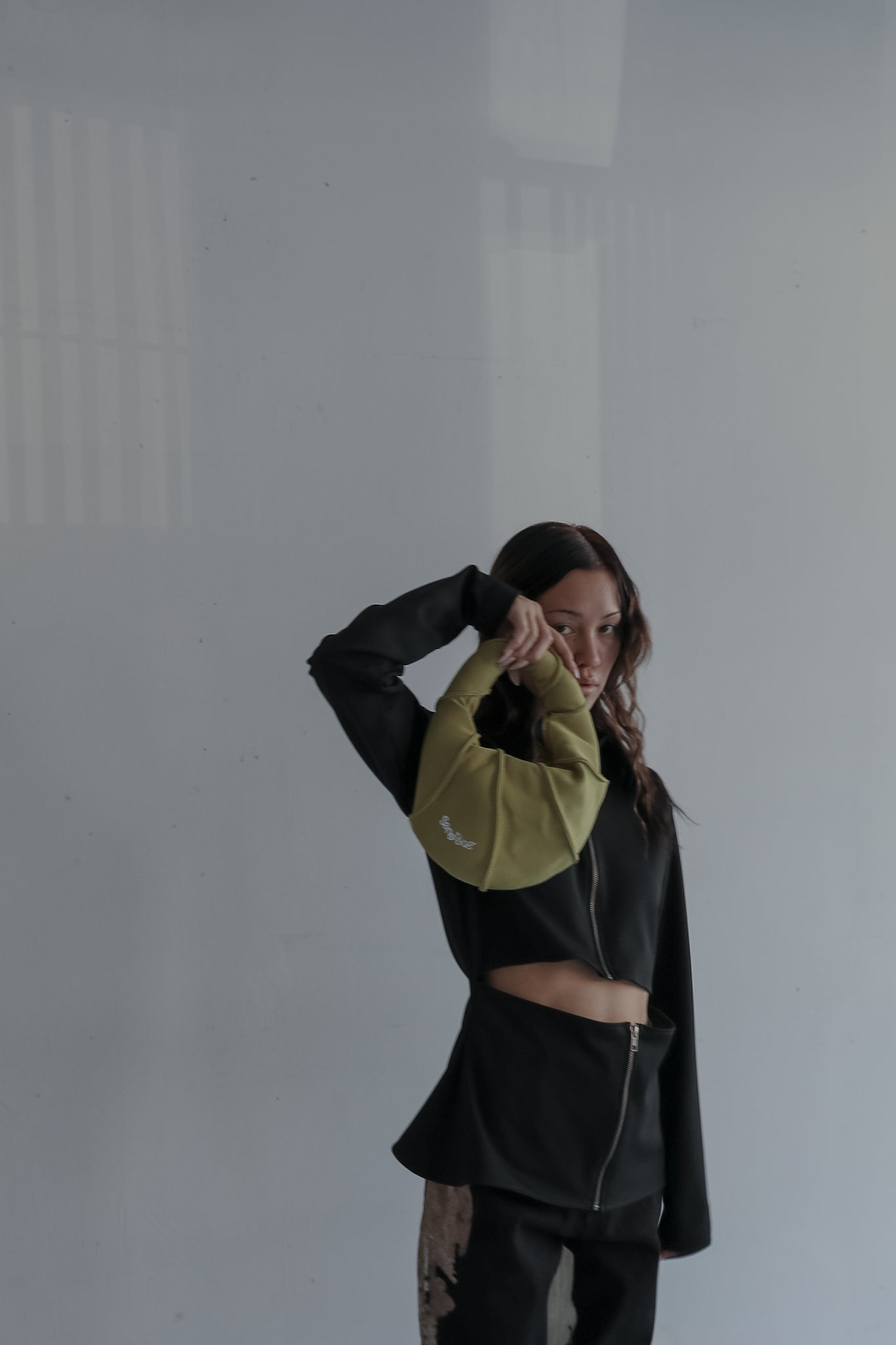 SansPeng, bridging Shanghai and London, reimagines casual wear with sophisticated comfort and fluid tailoring using deadstock and upcycled fabrics. Founded by product designer Sans, who also co-leads Untitlab, a gender-defying footwear and accessories label challenging categorization.