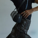 Elongated high shine leather bolter bag style with double strap and zip detail. Snap button detail can be custom to adjust the length of the straps. Fully lined.