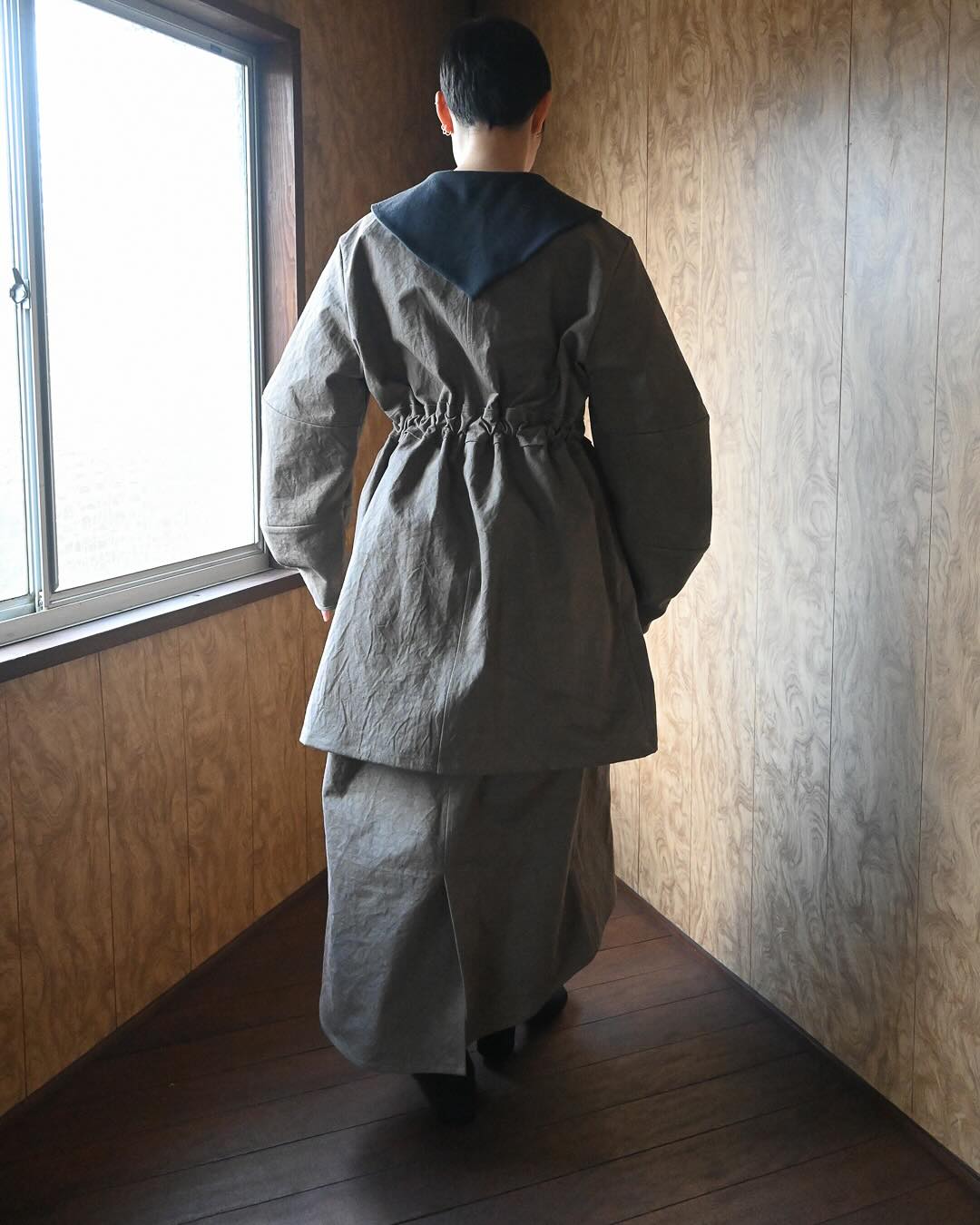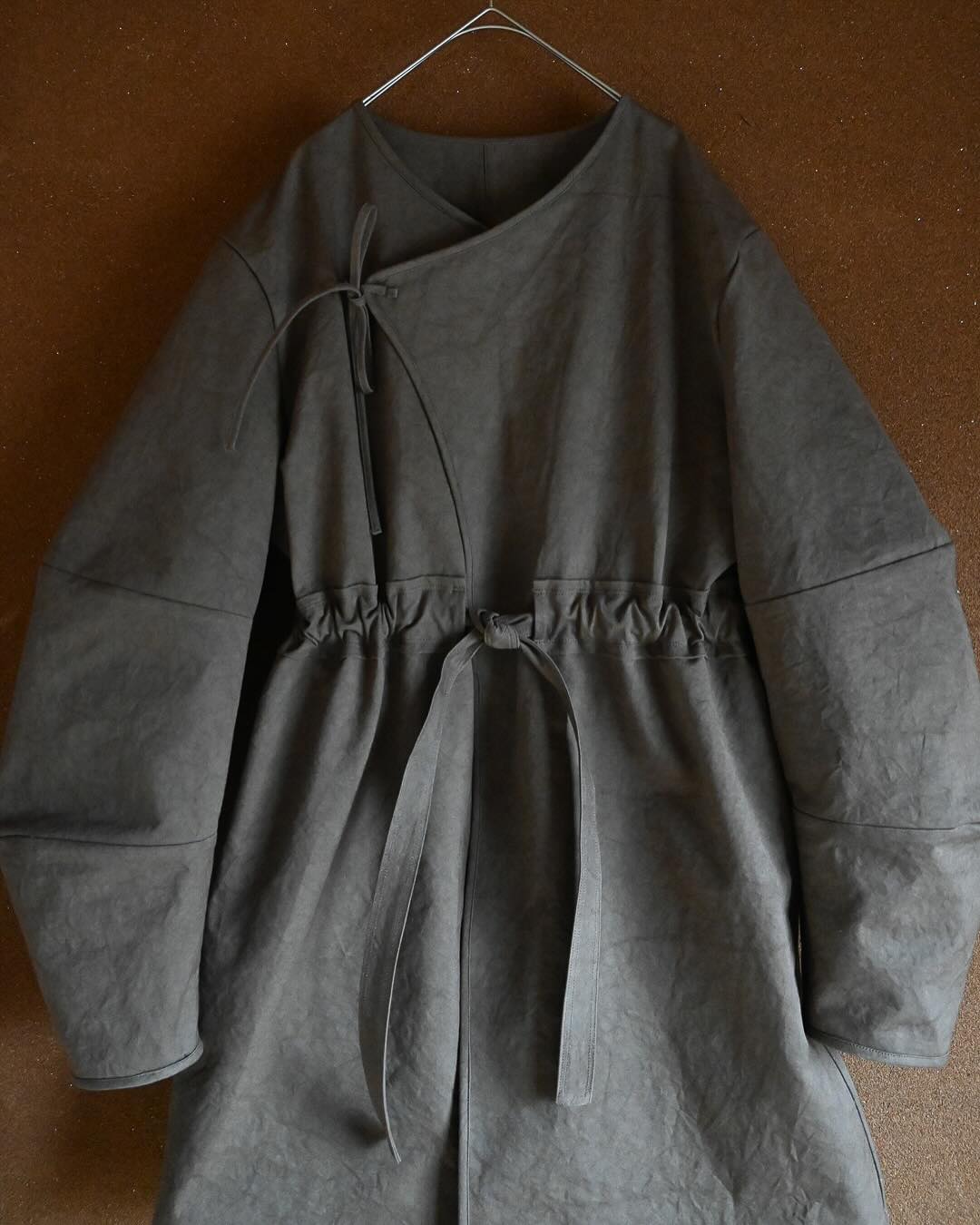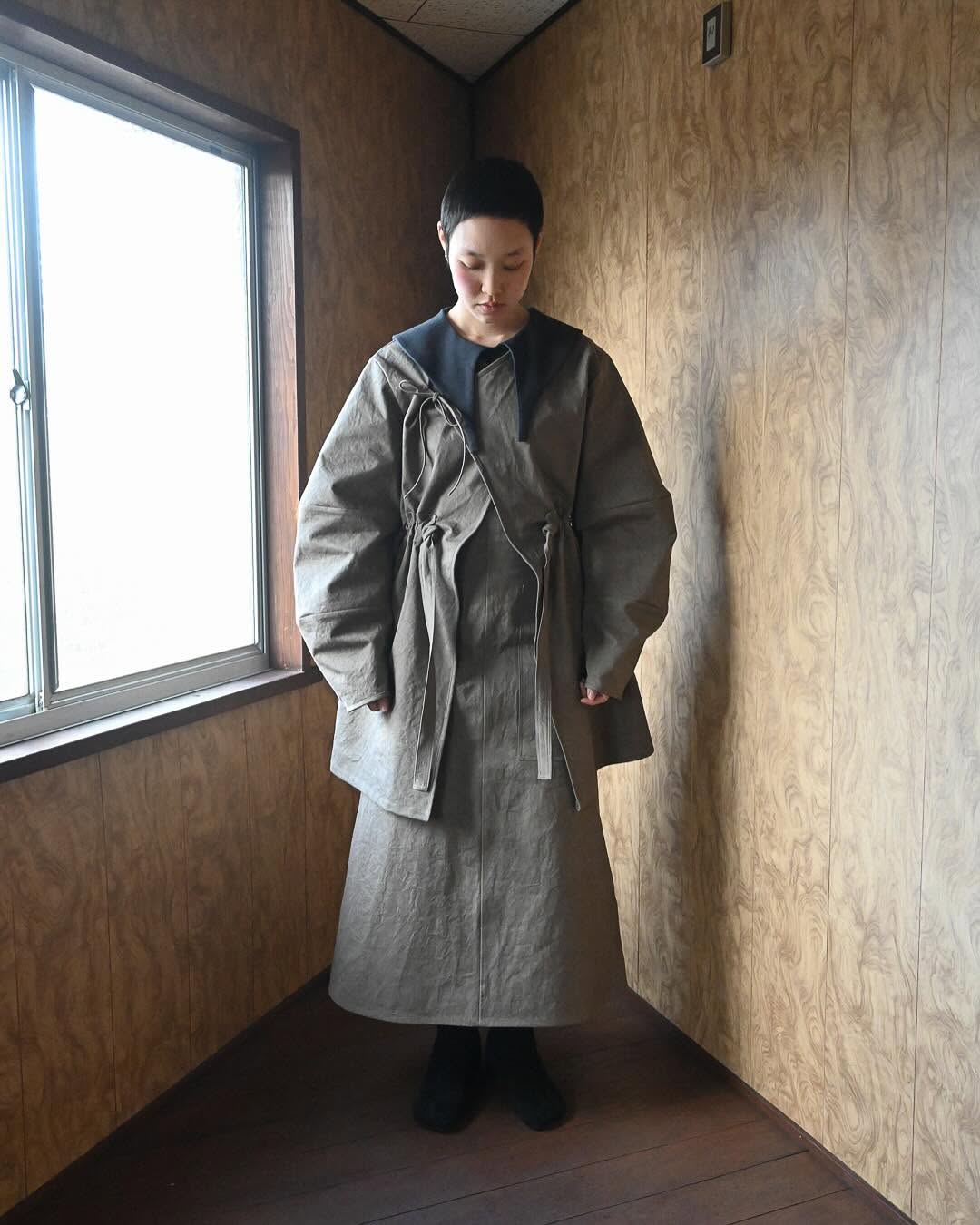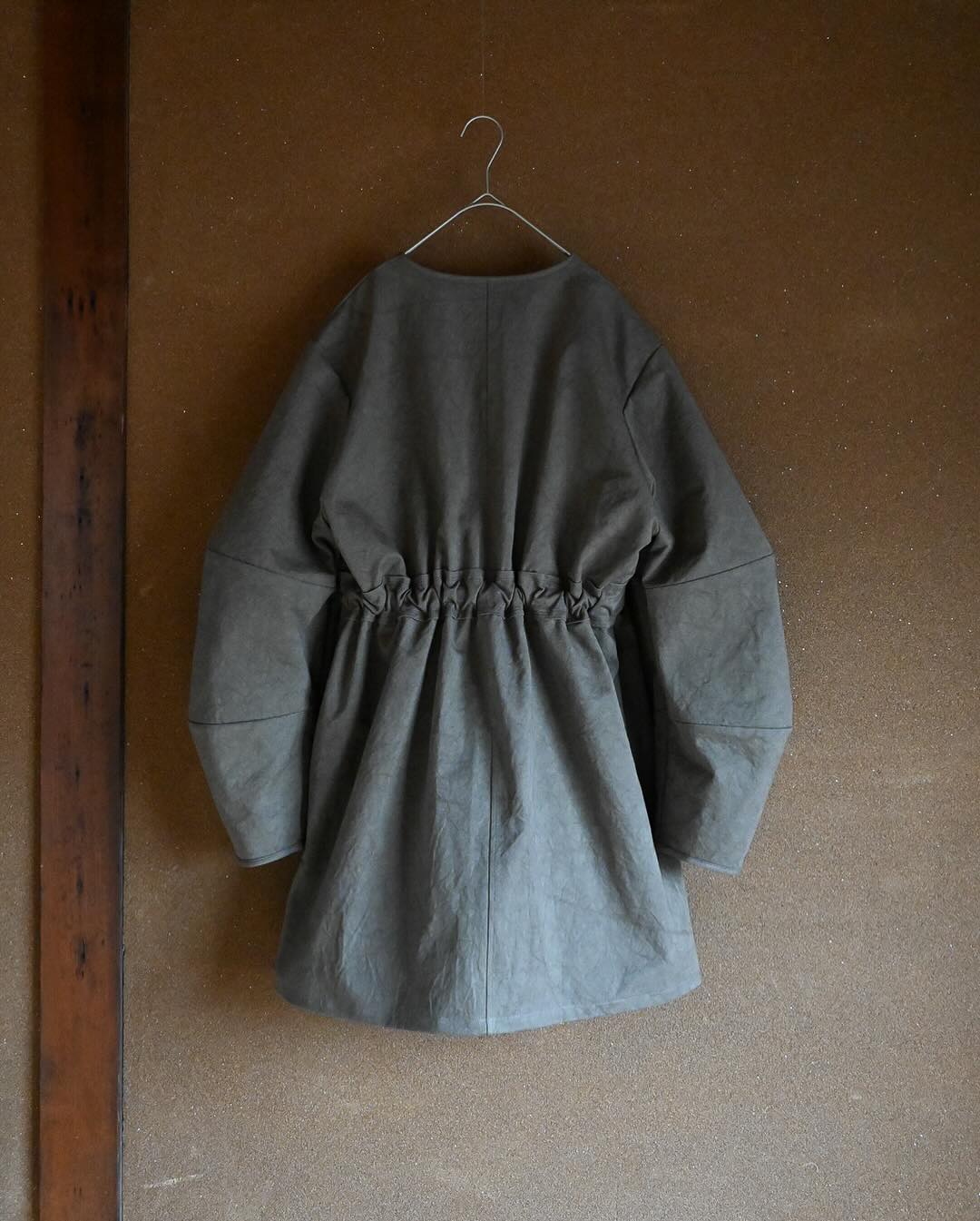 Long lightweight jacket made from 100% cotton woven in Hamamatsu, Japan. A 1/1 piece by designer Akari Tachibana based in Kyoto, made in 2025.