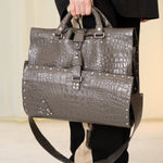 Le Joseph Foldable Leather Bag (Grey Croc)