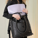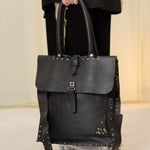 - At base, an aluminum crossbar insert and three brass ball studs help maintain structure and longevity of bag
