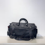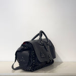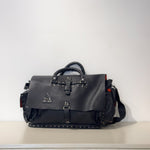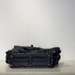 An icon sure to become more distinguished with age and wear. Black leather messenger style with red-orange interior leather sourced from Italy. Some rust and oxidation of hardware as well as creasing from years in storage, but ready to see the world once again.