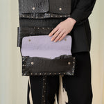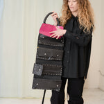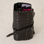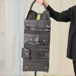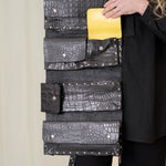 A sophisticated and “practical” leather roll-up travel bag for all your tools, accessories, and of course, travel essentials. This piece is inspired by the designer's extensive experience as a professional hair stylist while traveling worldwide for work.