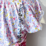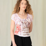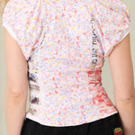 Scoop neck blouse with ruffle side collar and sleeves. Small rose detail at the chest. All pieces by Camila Frater are 1/1 handmade in New York.