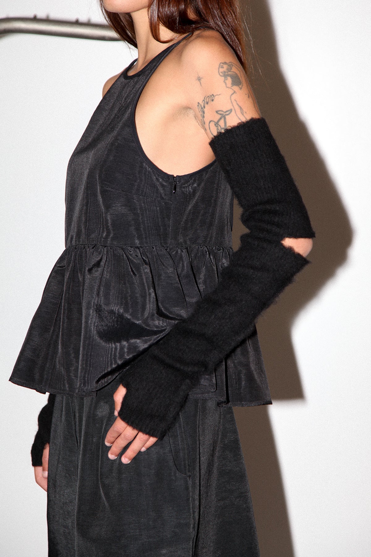 Designed with elongated sleeves and subtle elbow slit detailing.