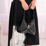 Calfskin leather with a magnetic ID front closure & zipper top and adjustable shoulder strap.