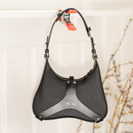 Riot is a versatile shoulder bag designed to mimic and fit the contours of your body. Features an exterior harness that conceals dual zipper pockets.