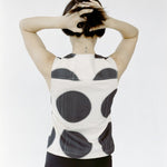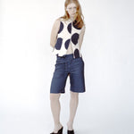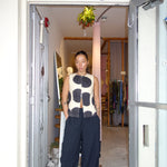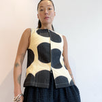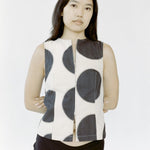 The spot vest is a fitted vest made from a soft yet slightly structured cotton twill. Two-way metal zipper for an adjustable fit, ultra-light cotton lining. Each vest is unique as the spot print layouts vary just slightly.