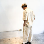 Wide leg pants in natural with 5 big pockets. Elastic waist + drawstring. Made in LA.