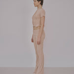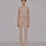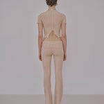 Low-waisted pants with a built-in mini skirt detail (non-removable). Relaxed fit. Asymmetric design with a unique suture and seam formation on each item. For this reason each top is unique and one-of-one. Finished garments may vary due to artisanal manufacturing.