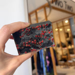 Ingredients: Activated charcoal, saponified palm kernel oil, palm oil, glycerin, sorbitol, propylene glycol, sucrose, purified water, turmeric powder, pink peppercorns, oil of hinoki and clove