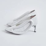 White pumps inspired by the lounge chair "LADY" designed by Marco Zanuso in 1952.