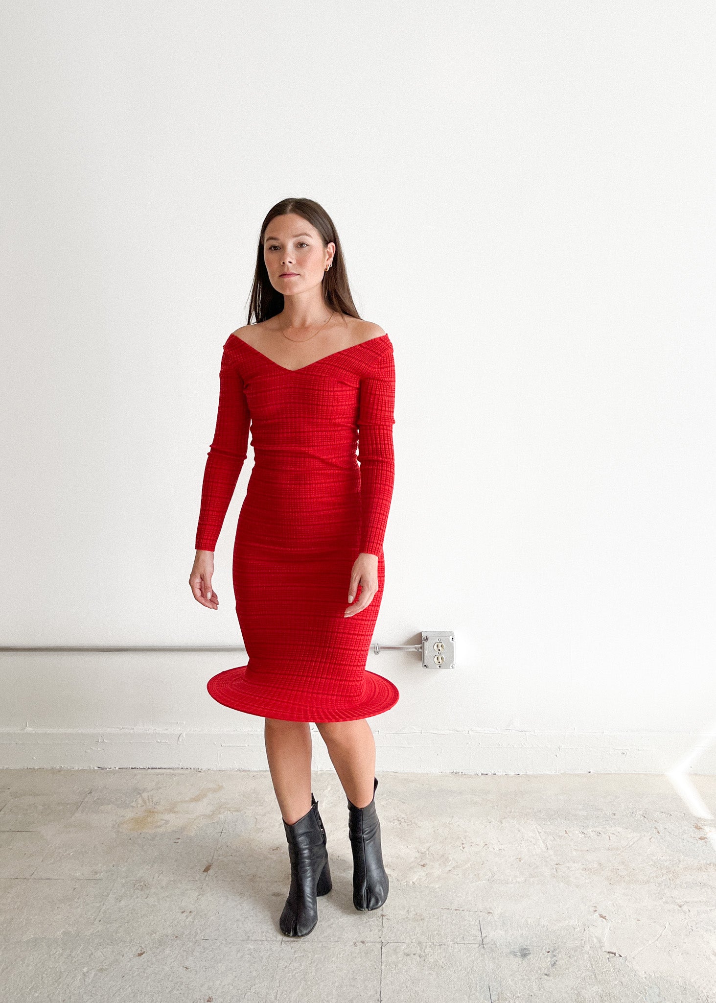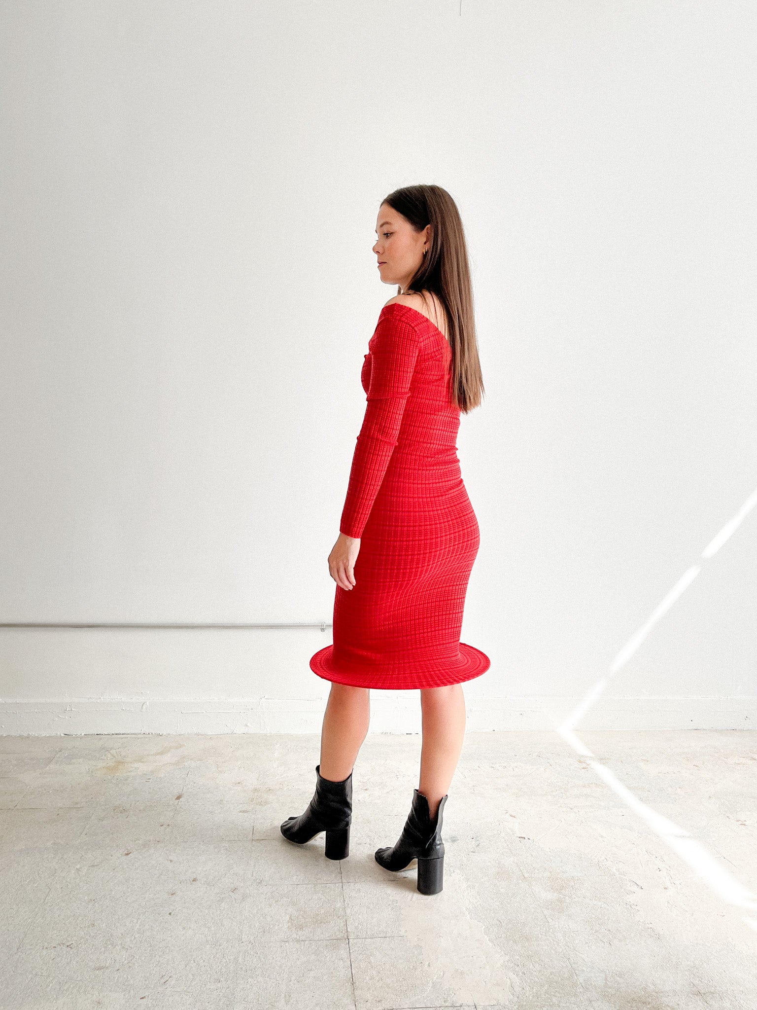 Long Sleeve Hoop Knit Dress (Red)