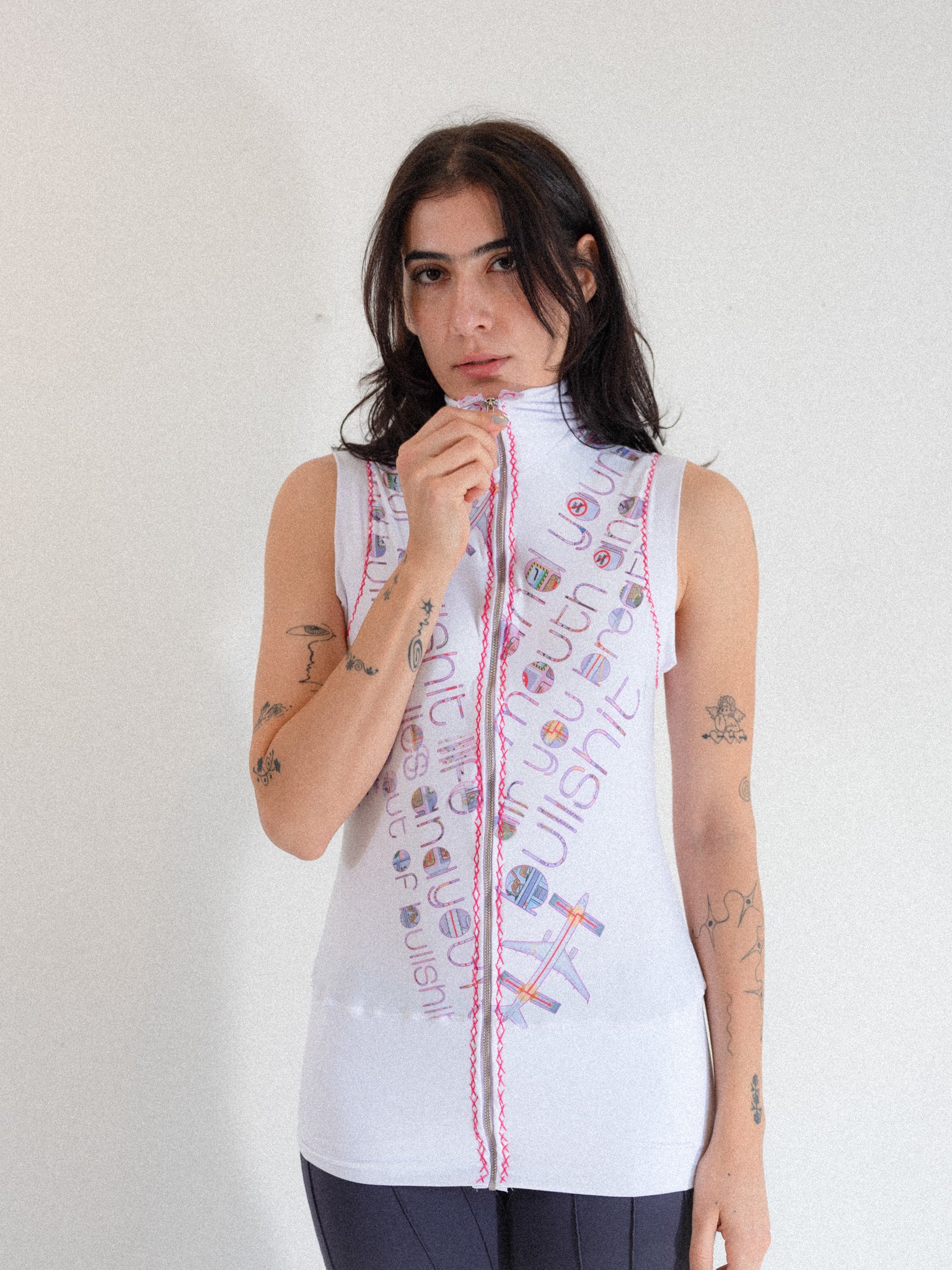 Camila Frater is a New York–based multimedia artist and designer creating loungewear that showcases her drawings and fine art. She combines dye sublimation, stenciling, and graphic design to blend 2D aesthetics with 3D form.