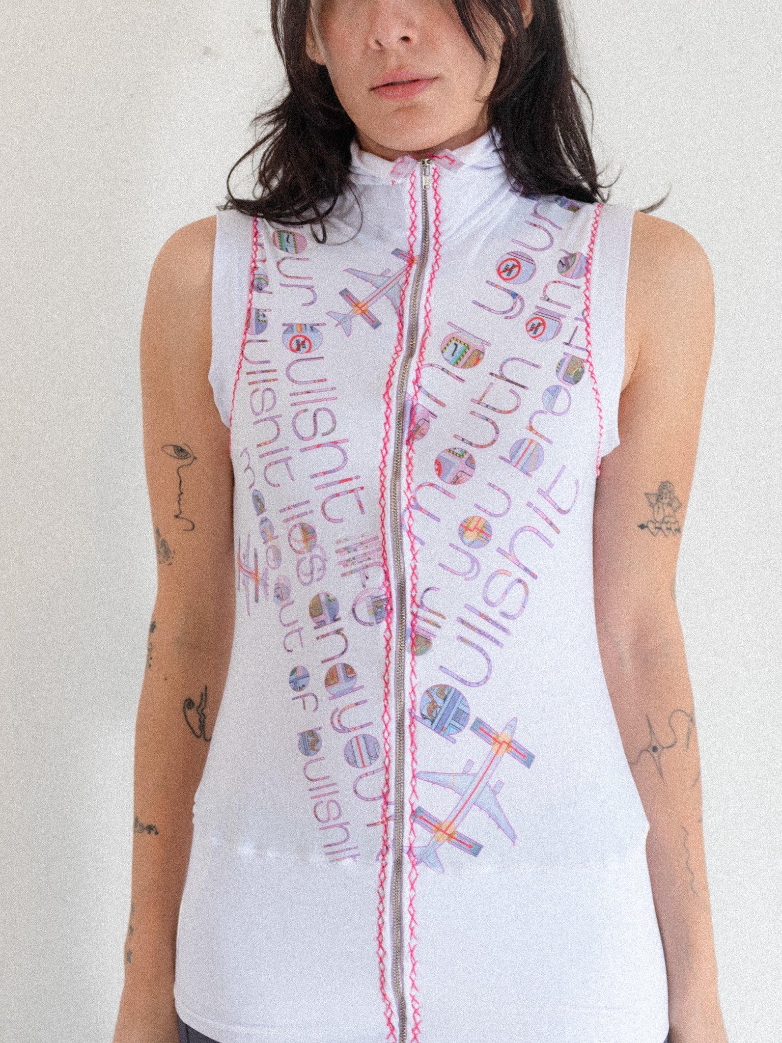 Zip Up Sleeveless Mock Neck