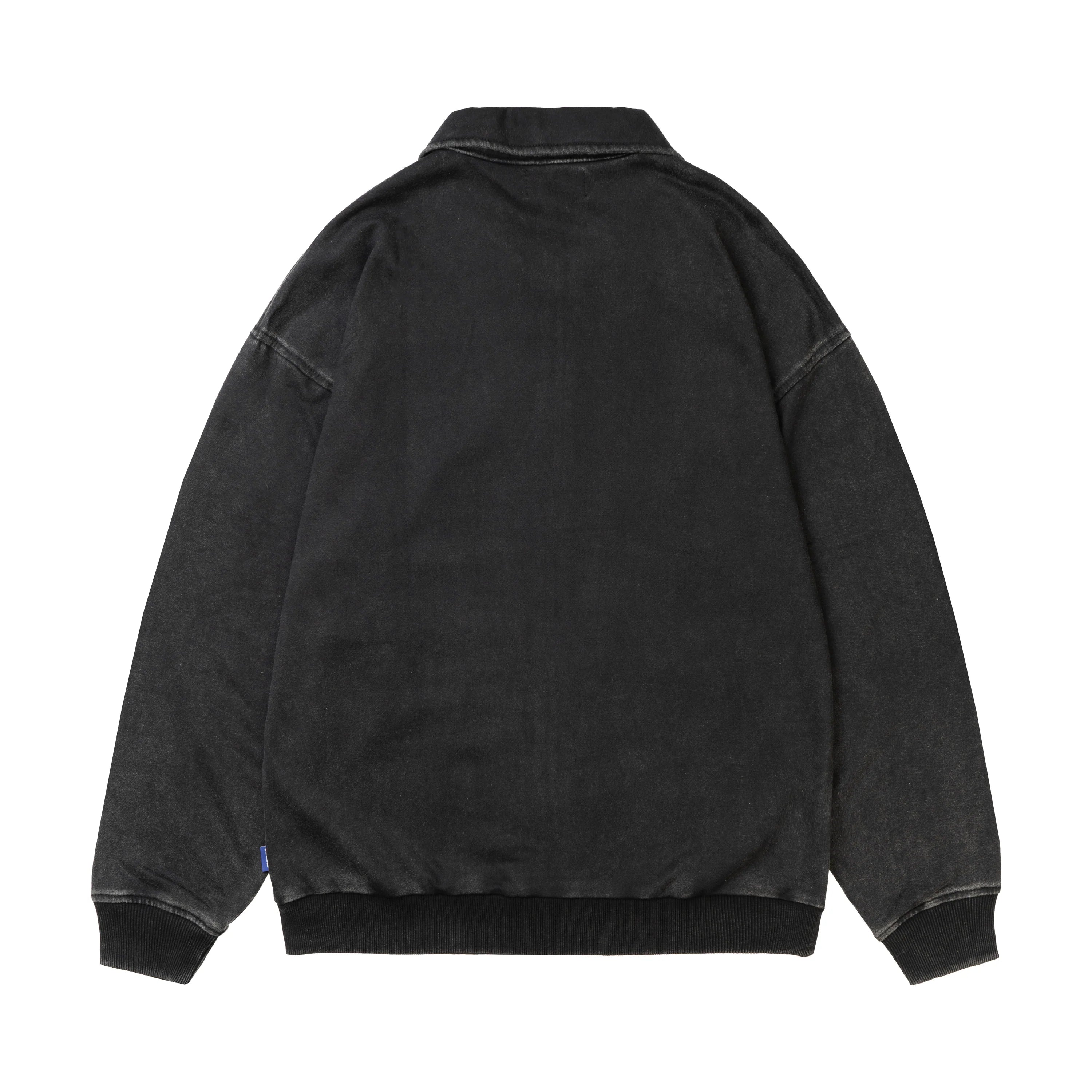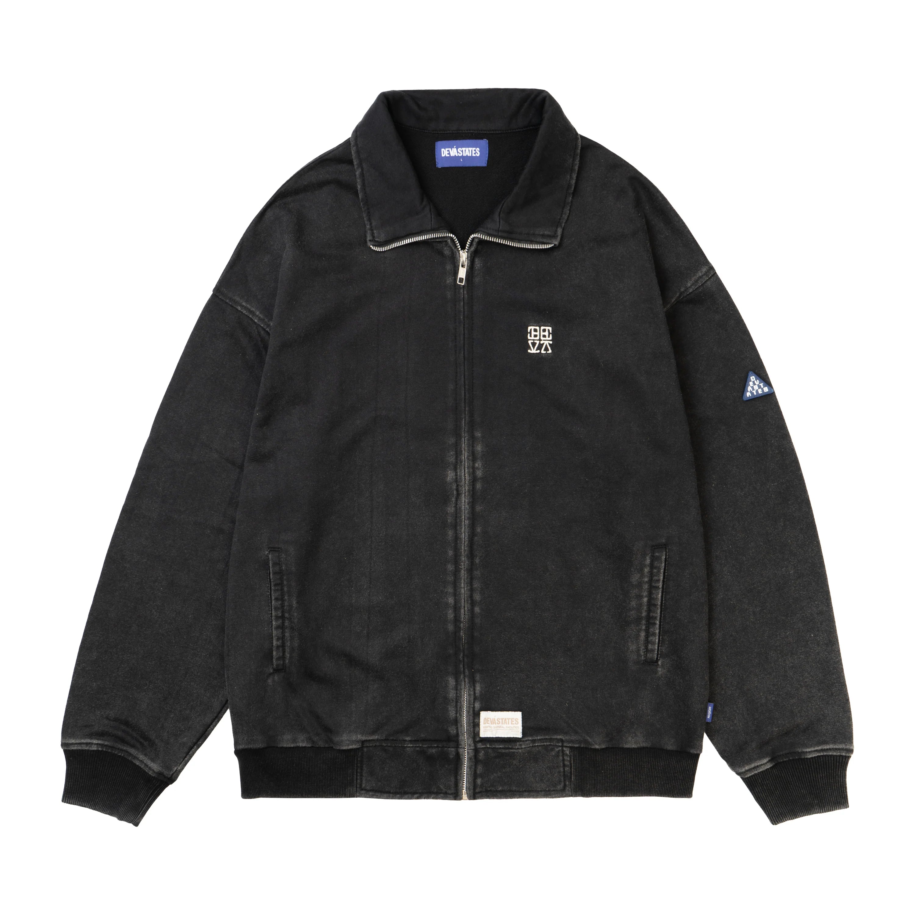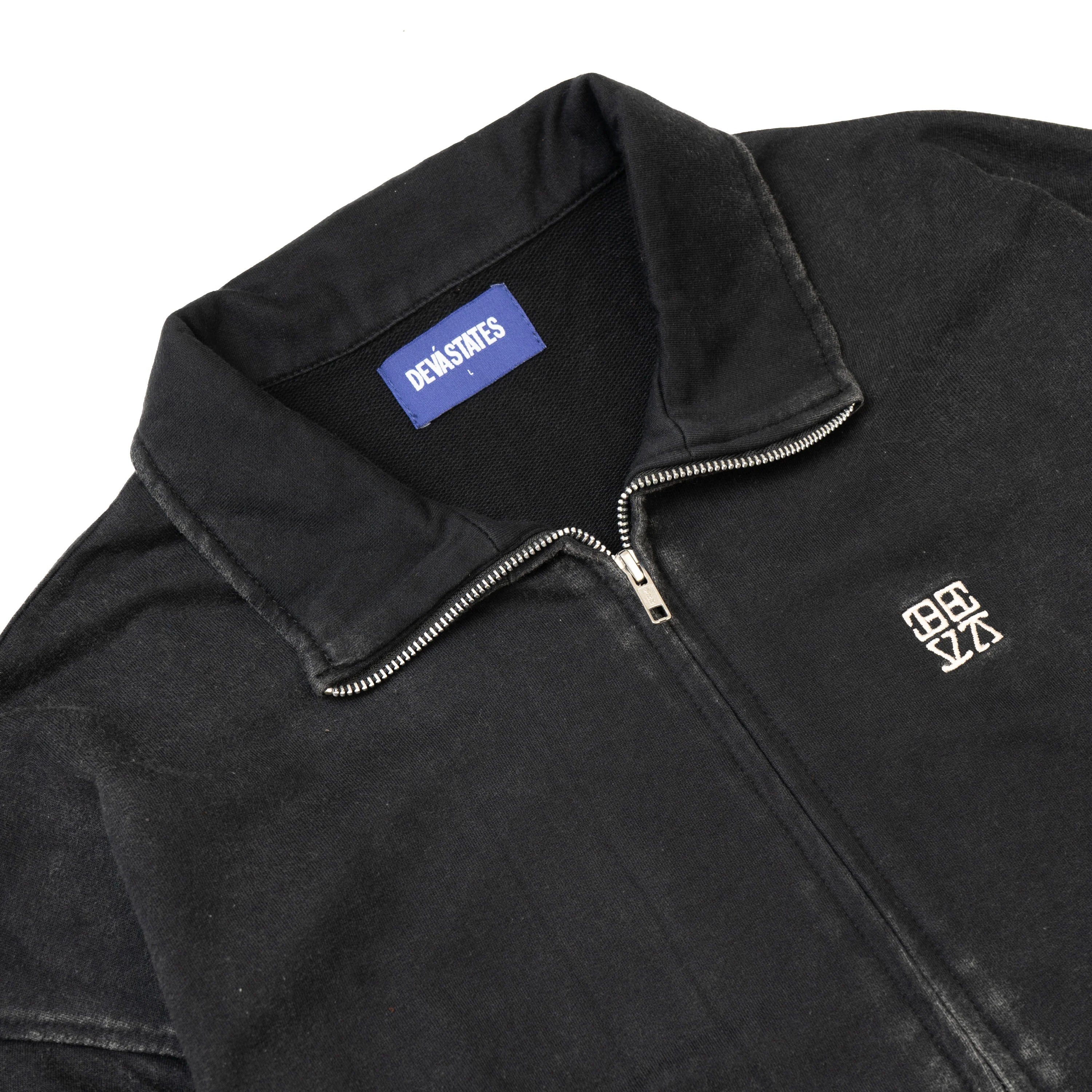 Soft cotton terry zip up track jacket in washed black, pre-shrunk for the perfect fit.