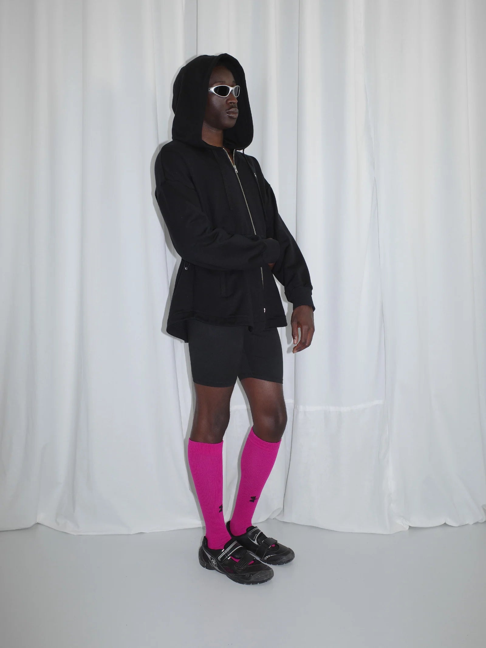 SansPeng, bridging Shanghai and London, reimagines casual wear with sophisticated comfort and fluid tailoring using deadstock and upcycled fabrics. Founded by product designer Sans, who also co-leads Untitlab, a gender-defying footwear and accessories label challenging categorization.