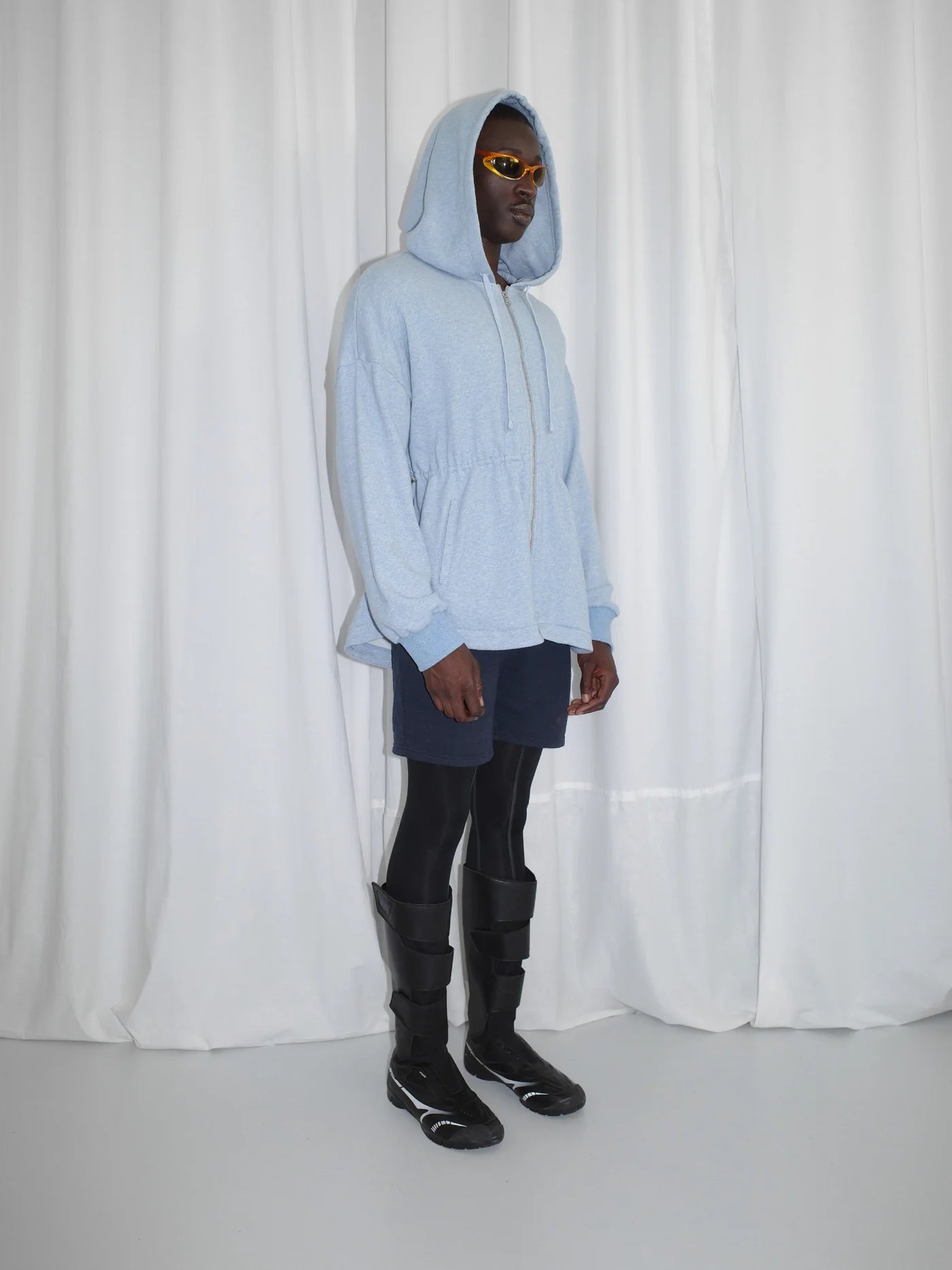 SansPeng, bridging Shanghai and London, reimagines casual wear with sophisticated comfort and fluid tailoring using deadstock and upcycled fabrics. Founded by product designer Sans, who also co-leads Untitlab, a gender-defying footwear and accessories label challenging categorization.