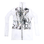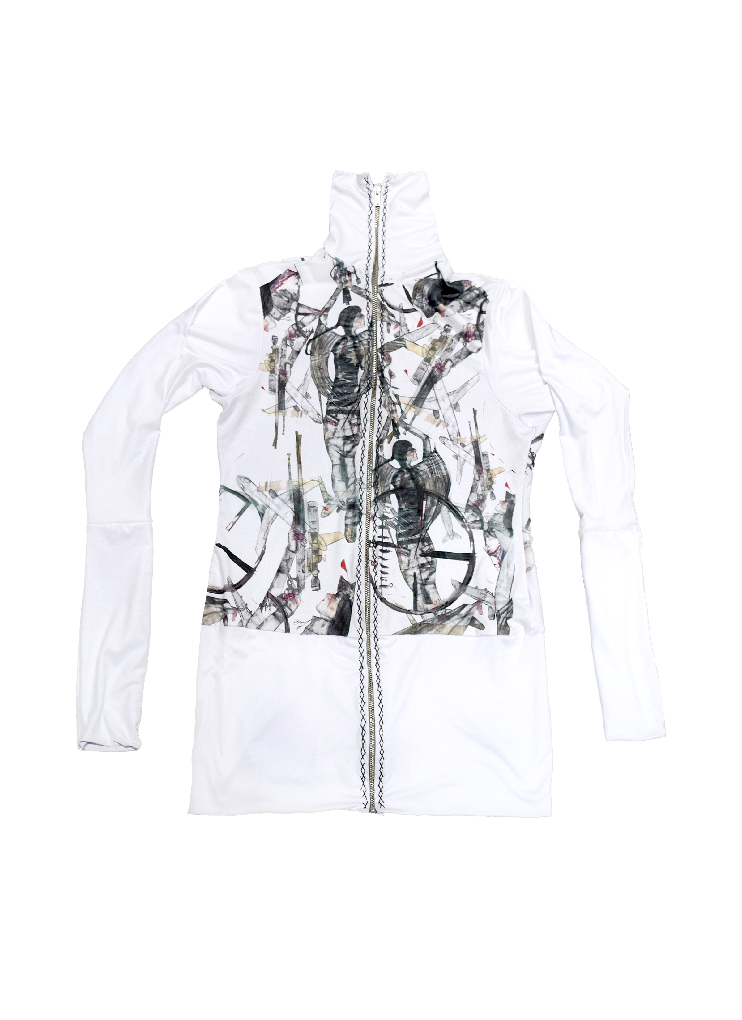 Soft brushed jersey turtleneck zip-up with original Camila Frater illustration and stitch work.