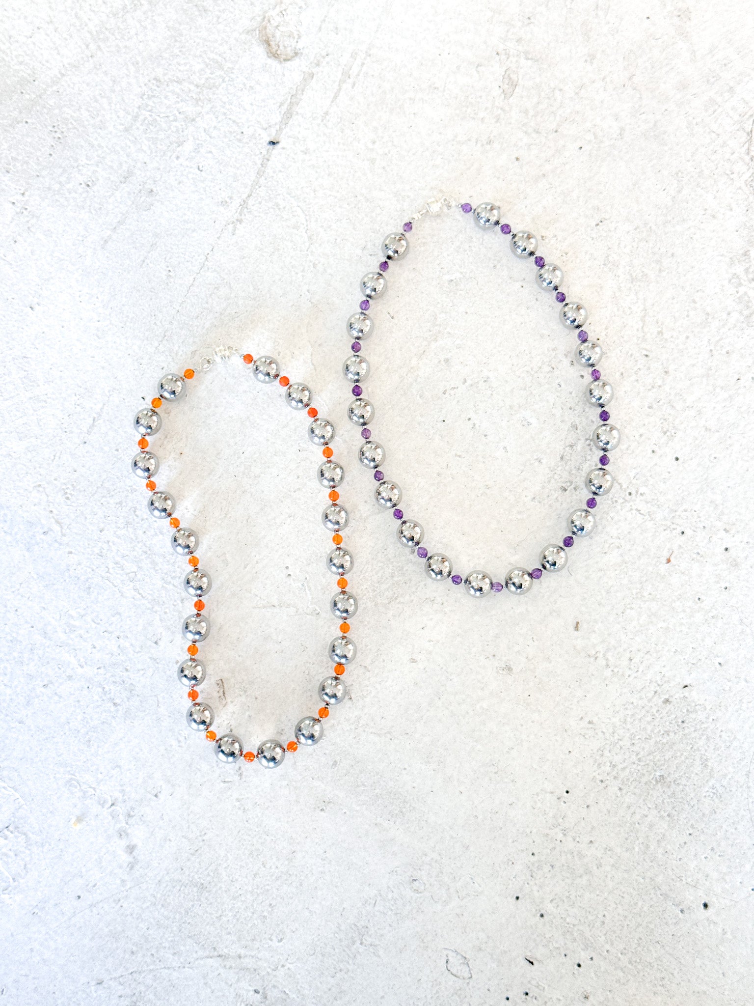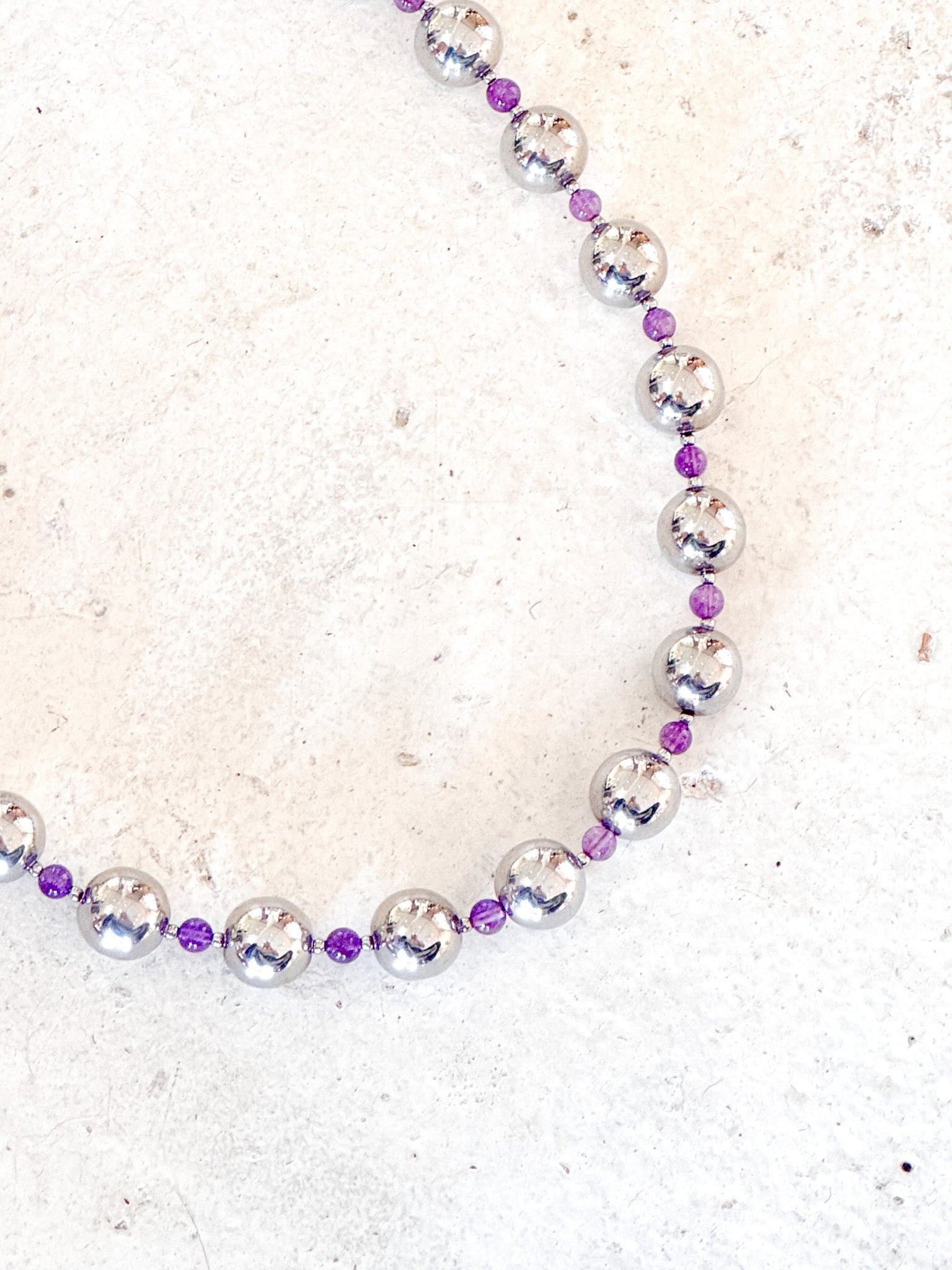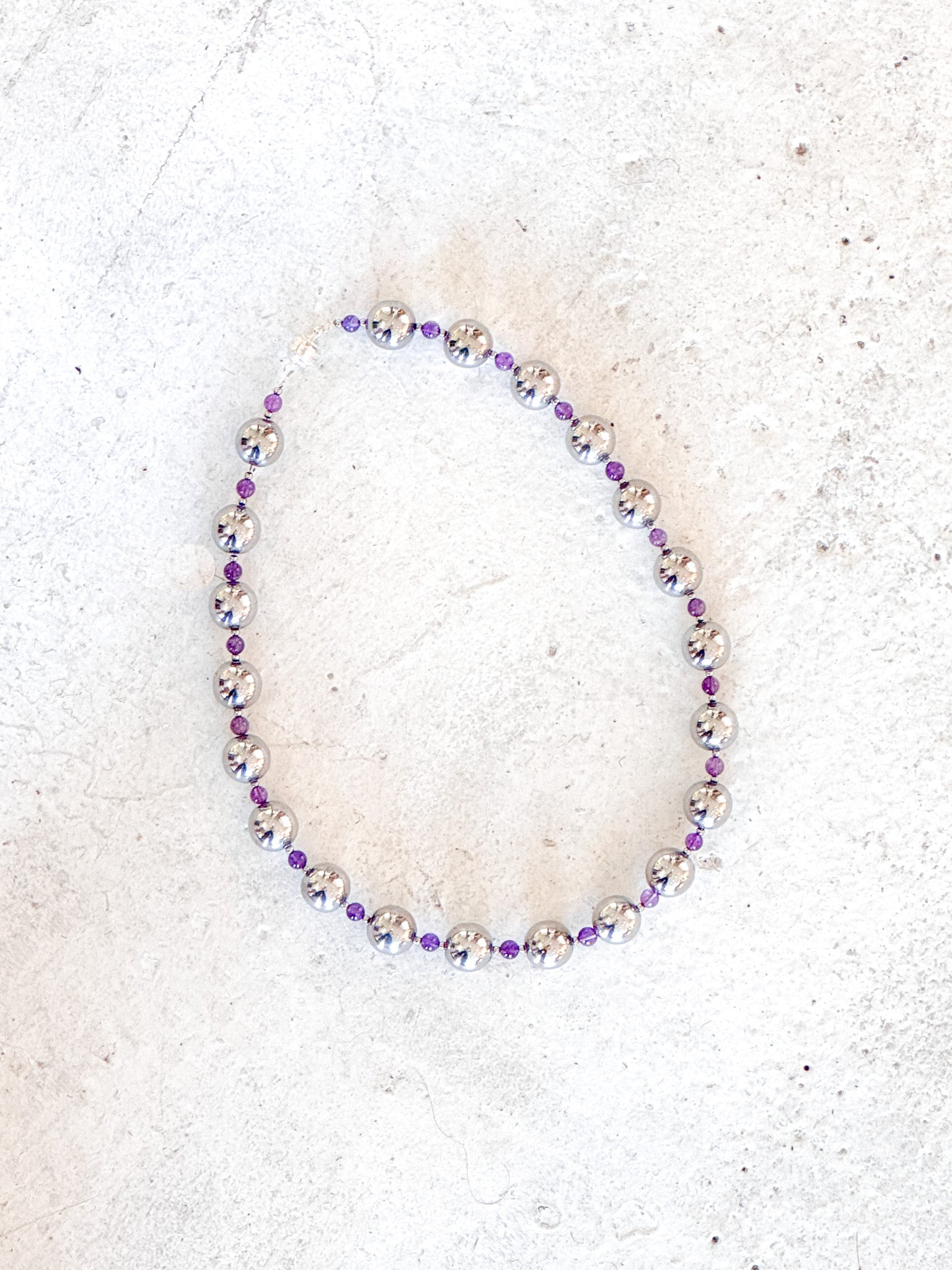 Silver Hematite, Amethyst, and Sterling Silver with a magnetic closure
