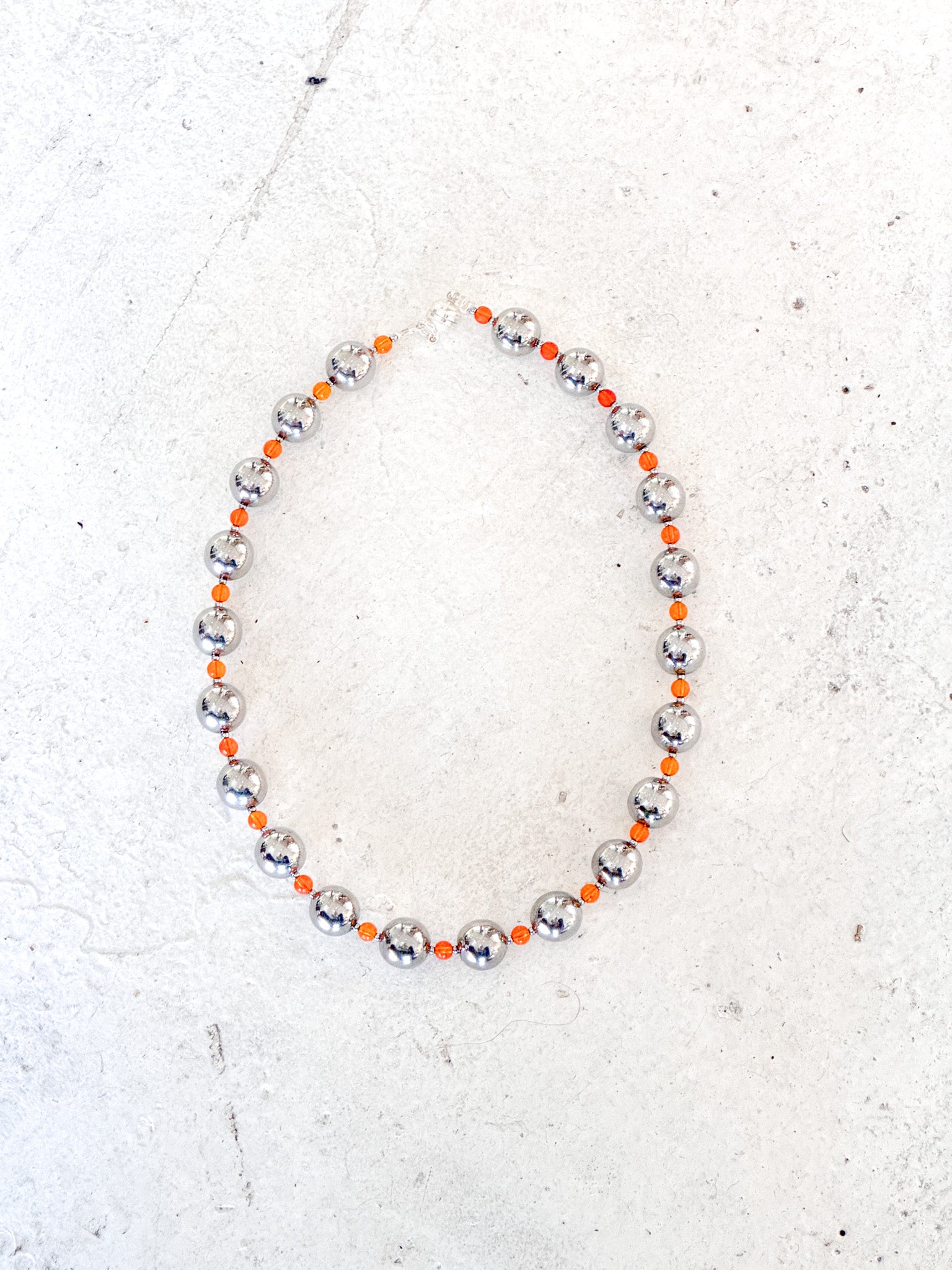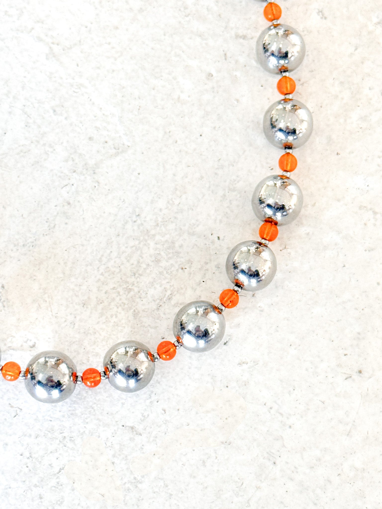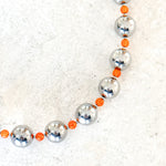Silver Hematite, Orange Sea Glass, and Sterling Silver Magnetic Closure