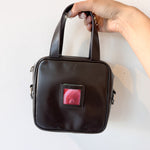 Square mini leather bag in black with a portrait slot in front. Comes with 2 lenticular slides that can be interchanged.