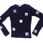 Soft touch black long sleeve with small aura patches throughout that animates with movement.