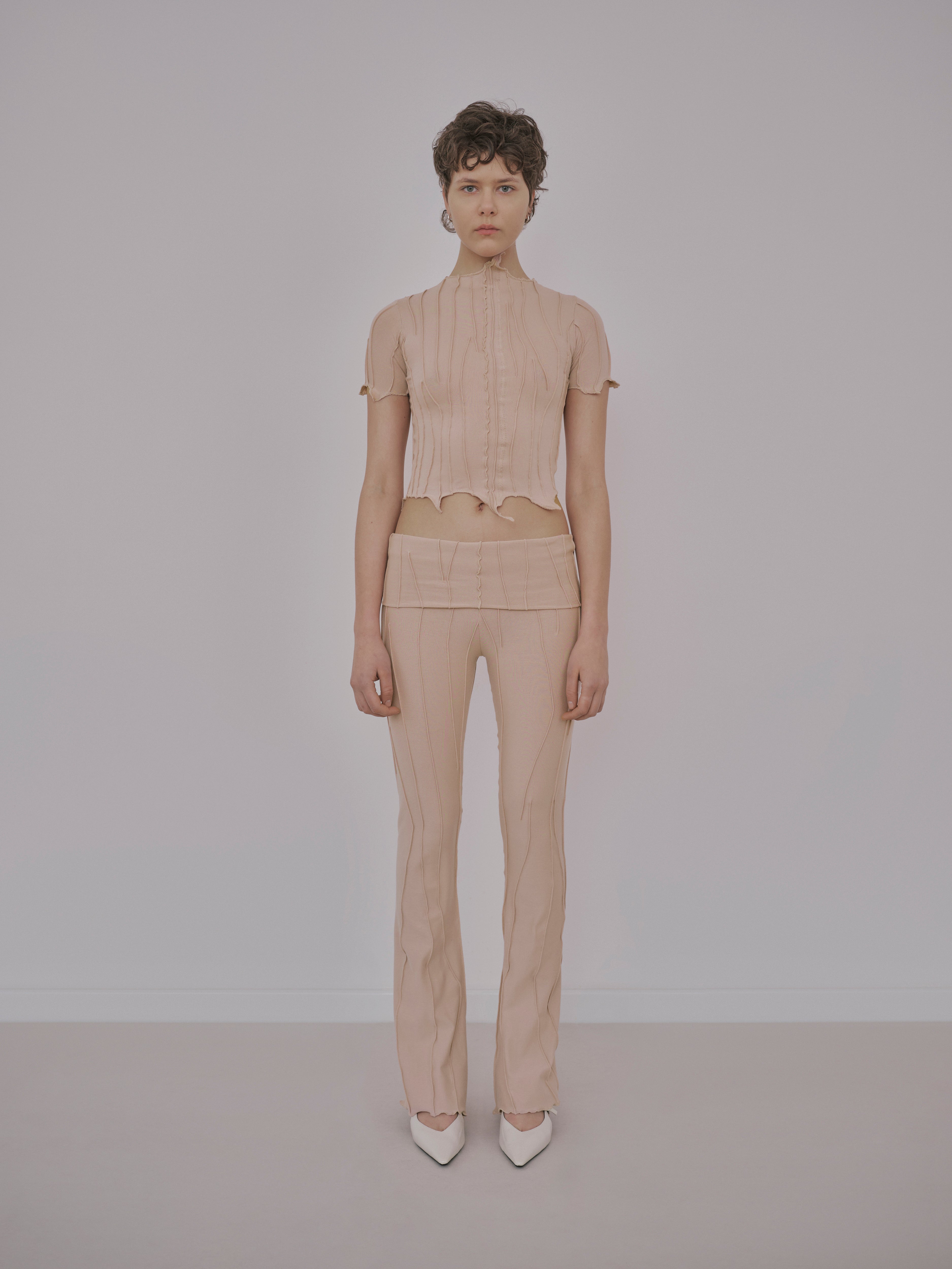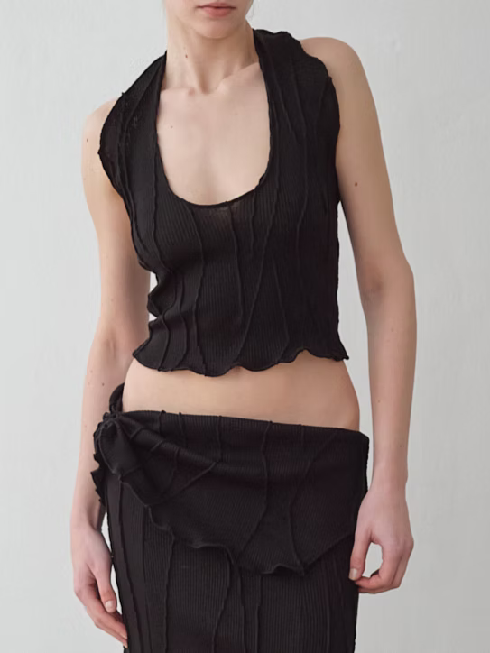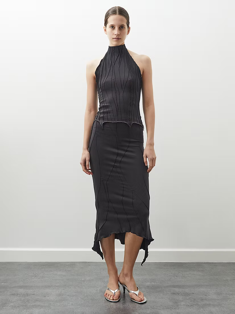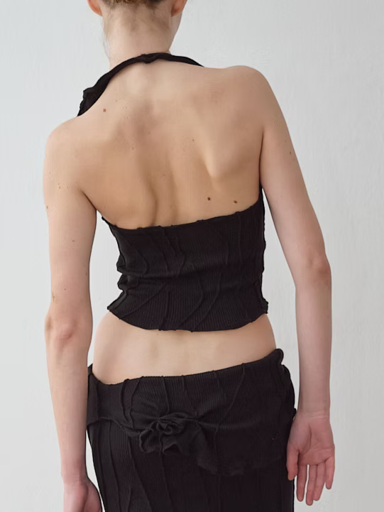 Mariola Homoncik is a Cracow/Poland based knitwear and scraps designer. Each piece employs an asymmetric design with a unique suture and seam formation. Mariola’s work explores the relationship between the human body and fabric drape, influenced by fabric 'cut-offs' to reimagine excess materials into new wearable forms that are feminine and elegant. From her local studio, she personally designs and produces each design for the label.