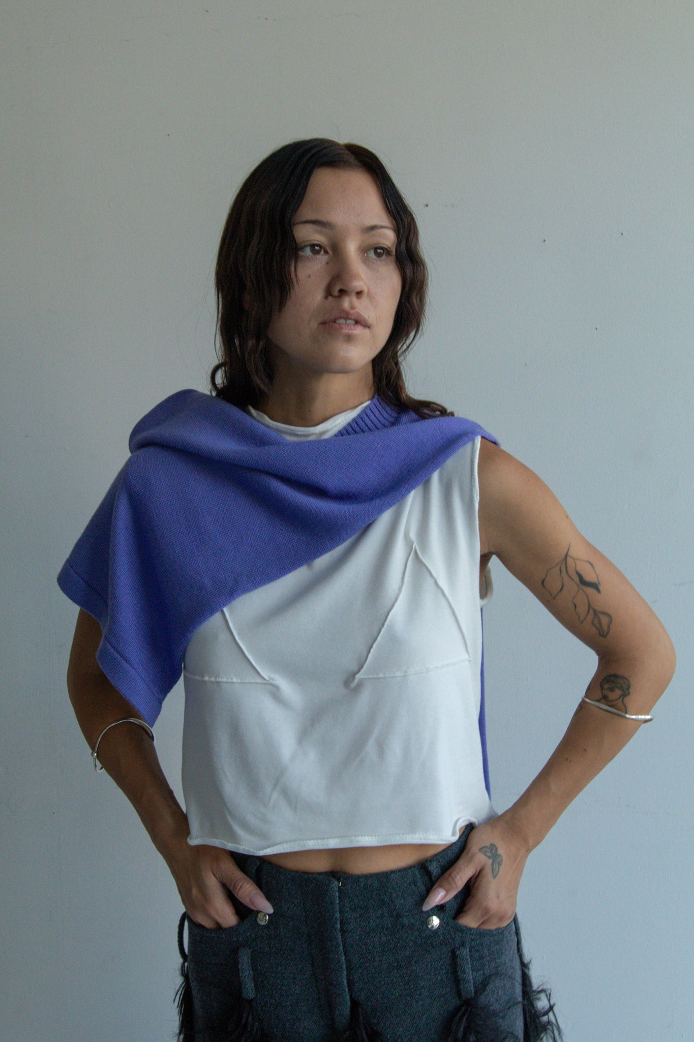 Sleeveless top with bra imitation seams. Asymmetric form of clothes, decorative overlock details, triangle bra seams, stitching on the material. Handmade from high-quality elastic organic cotton in Cracow.