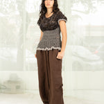 The classic chef pant silhouette in Chocolate made from 7.5oz linen