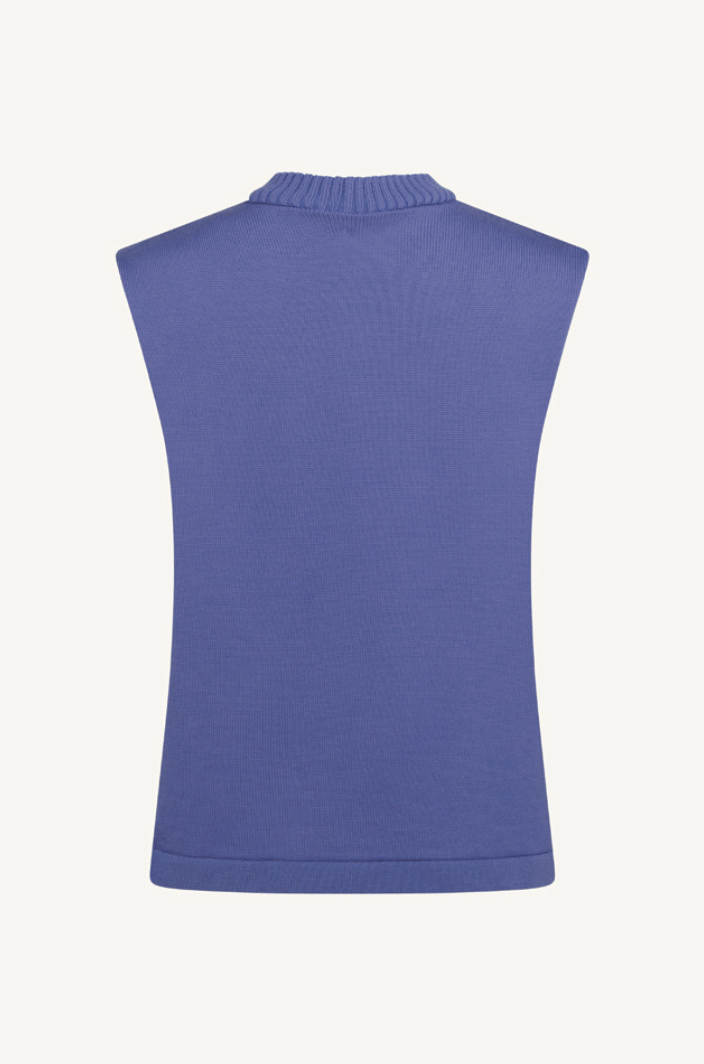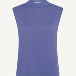 Sleeveless crewneck bib top in fine merino wool knit.