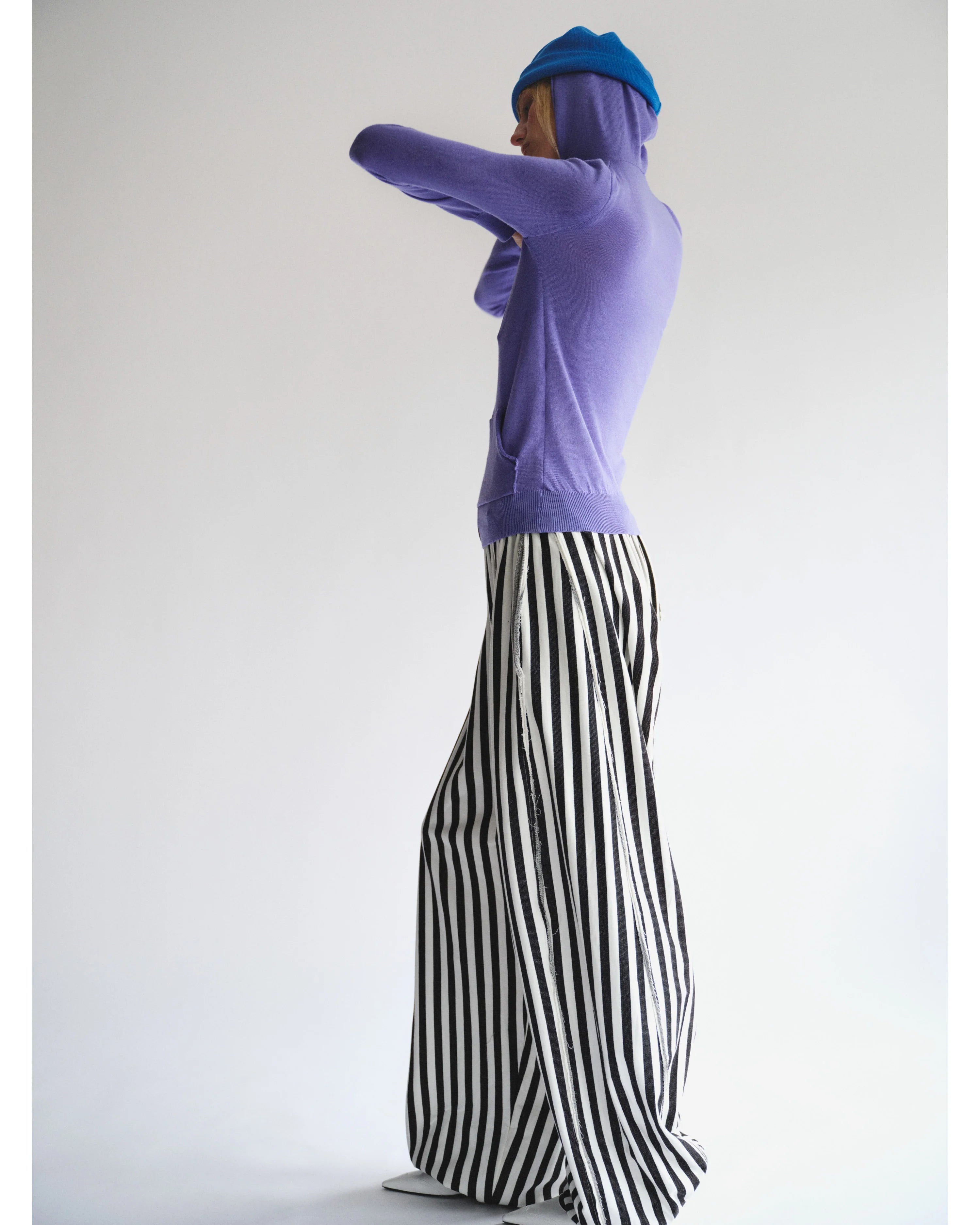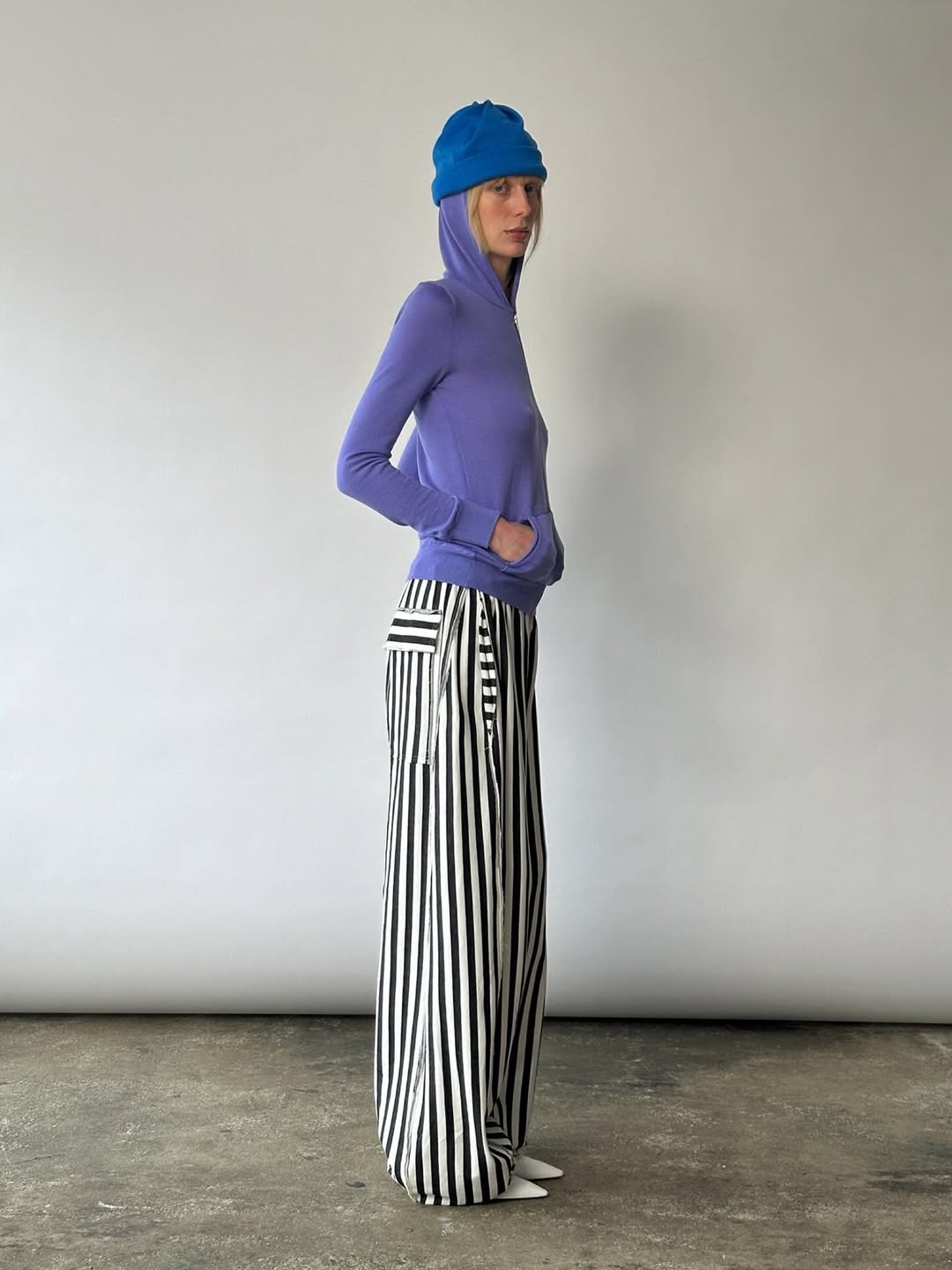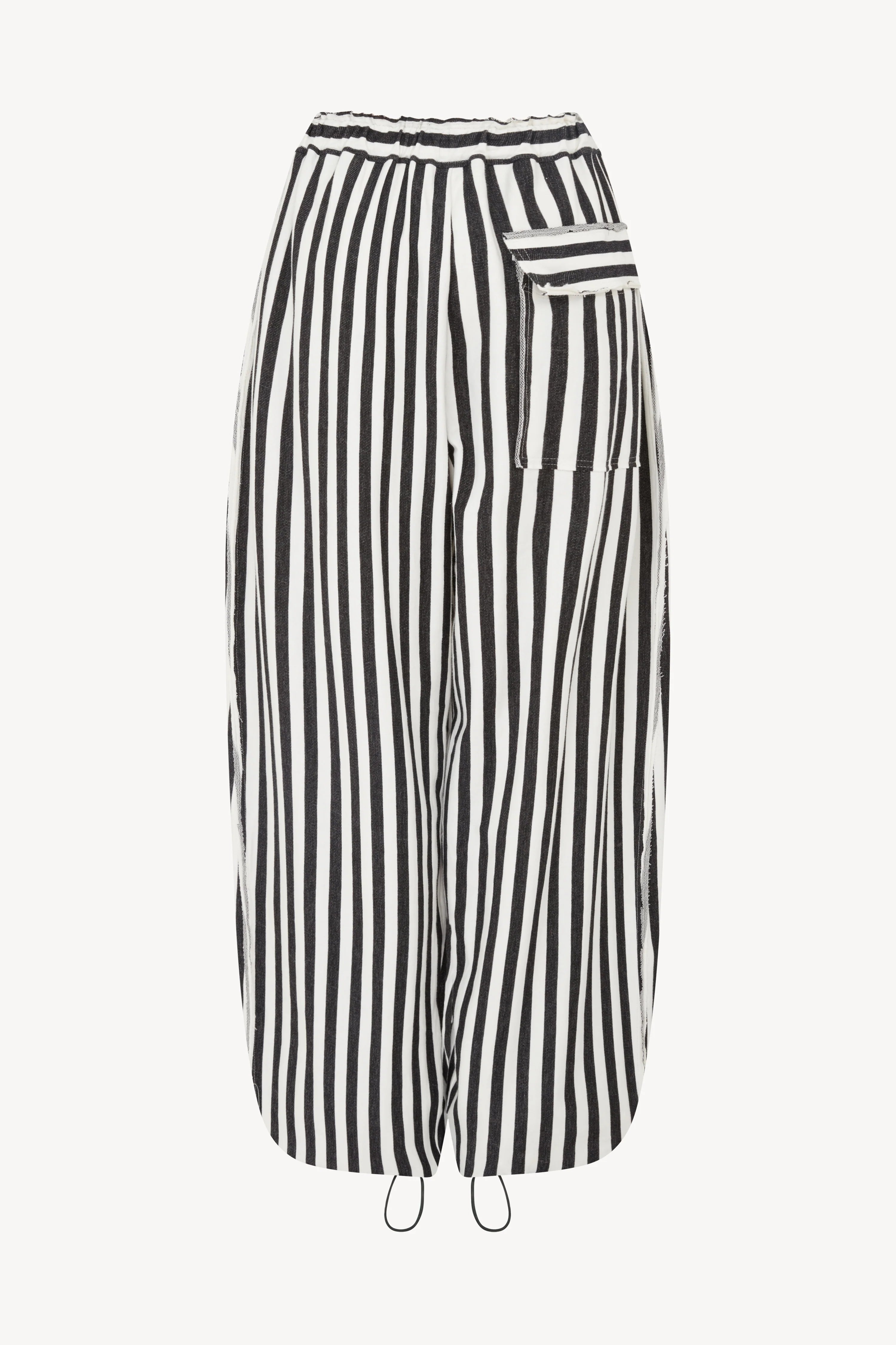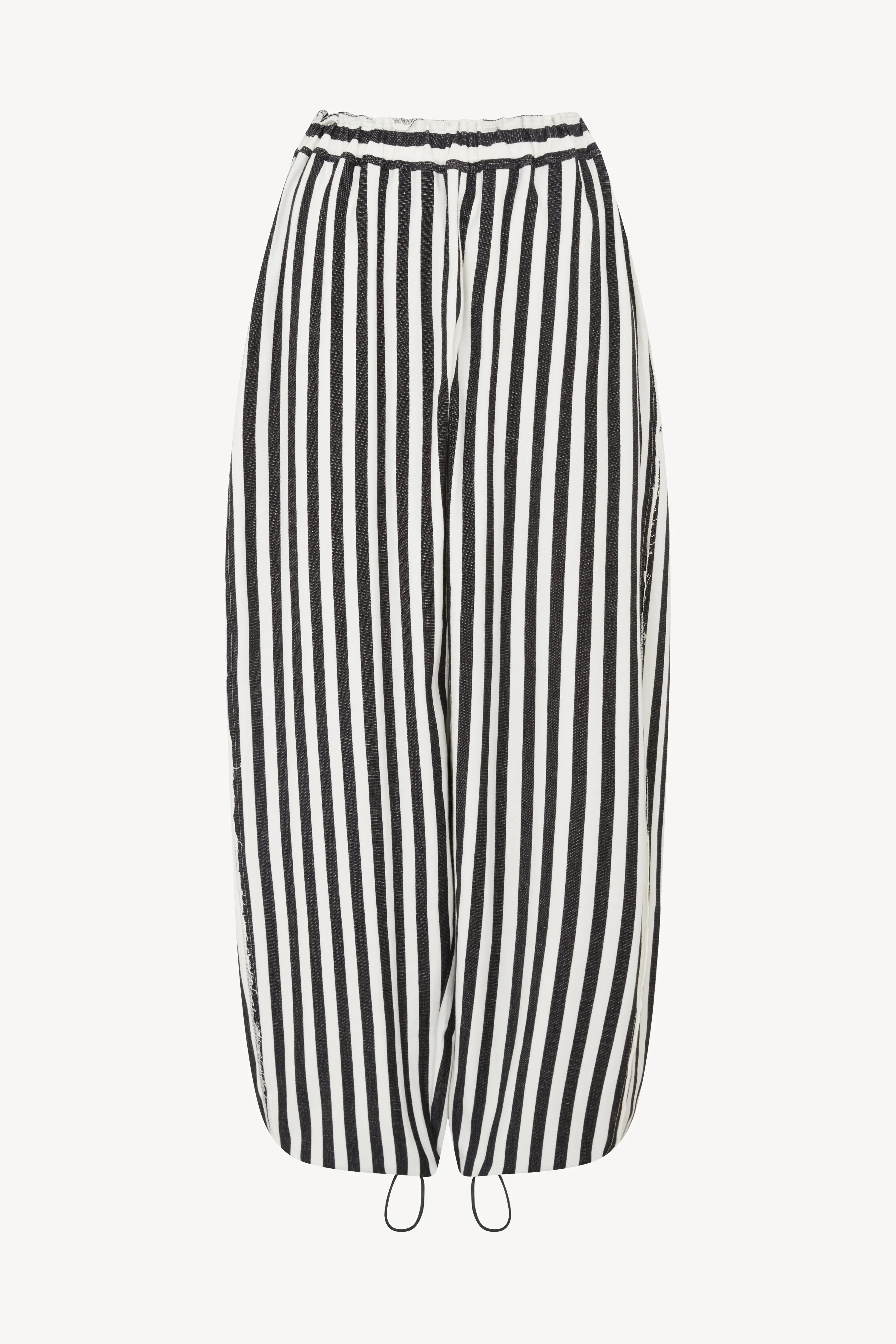 Loose fit trousers made from cotton sweatshirting jersey. Elasticated waist and finished with an elasticated drawstring hem.