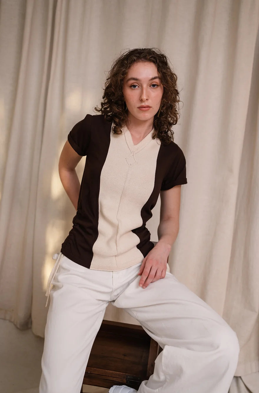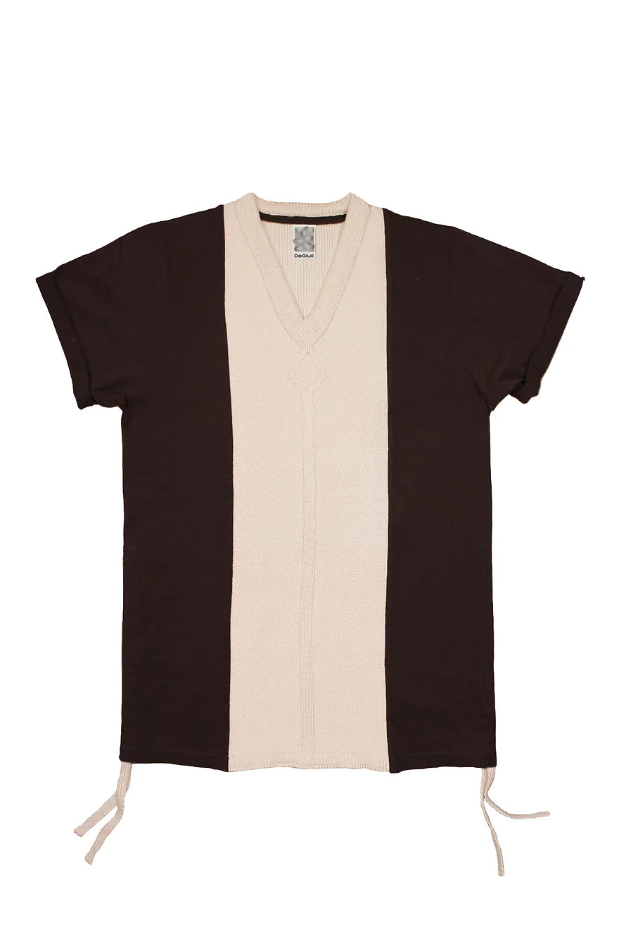No. 113 Short Sleeve Knit V-Neck Shirt (Chocolate Brown)