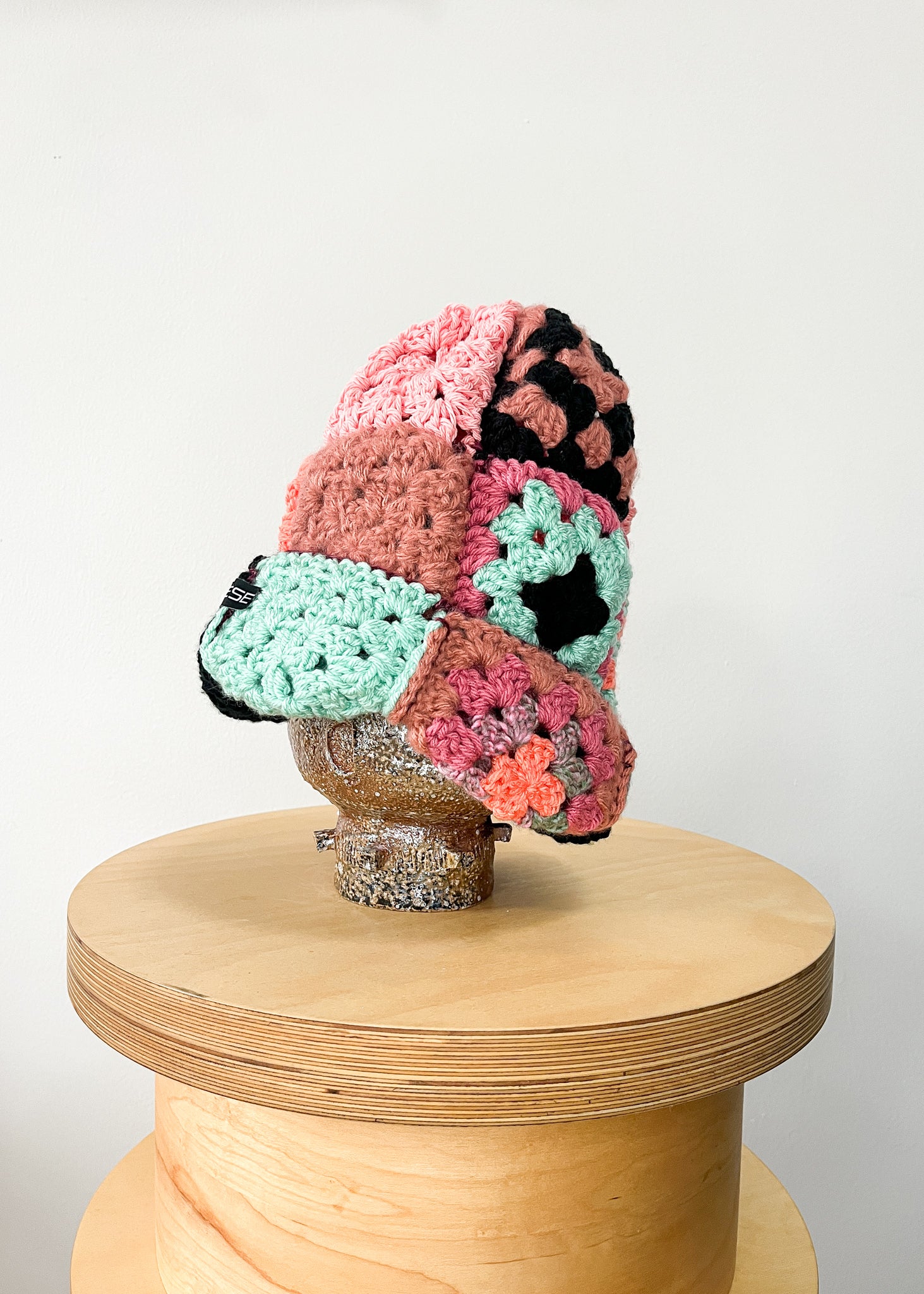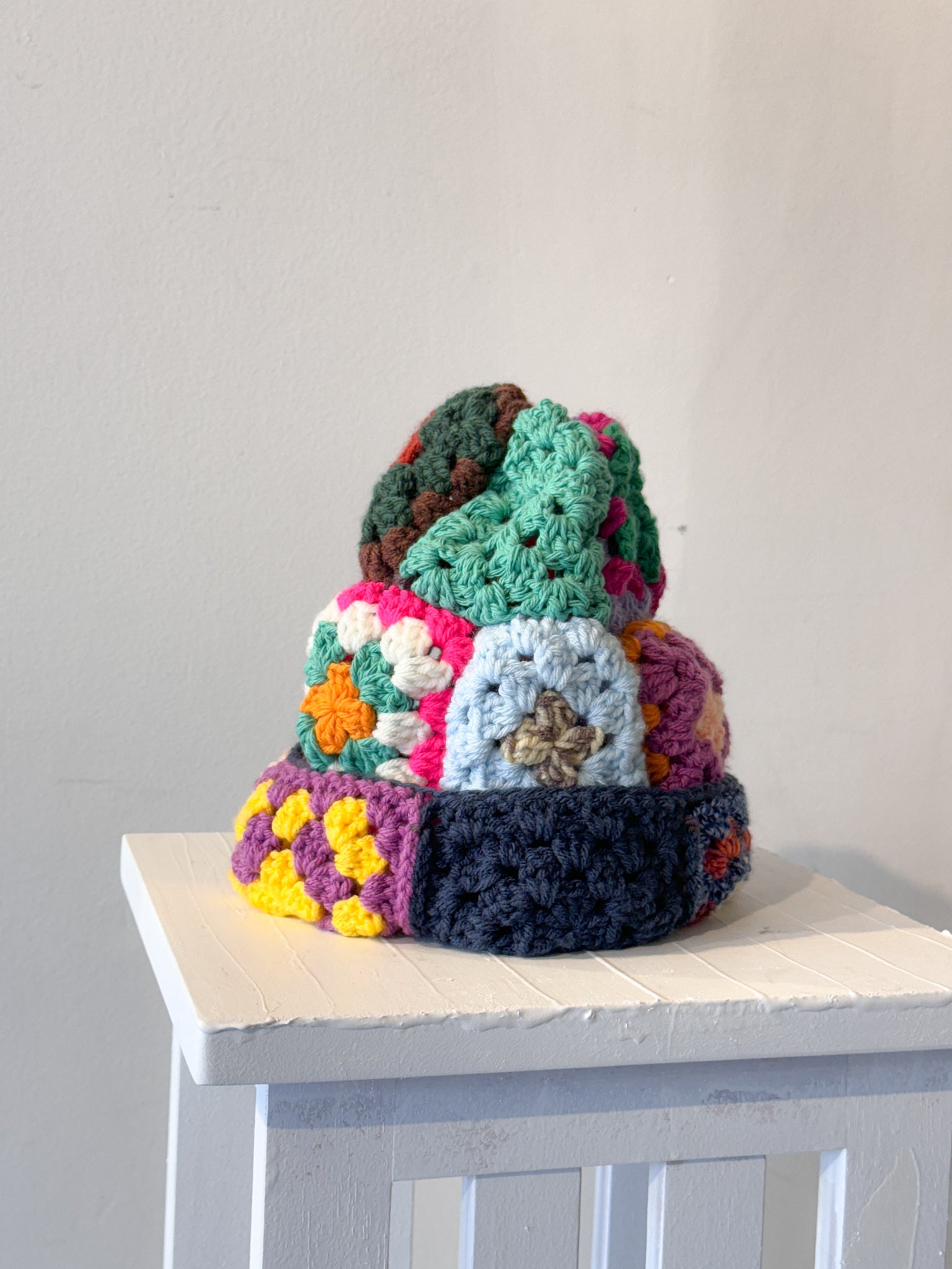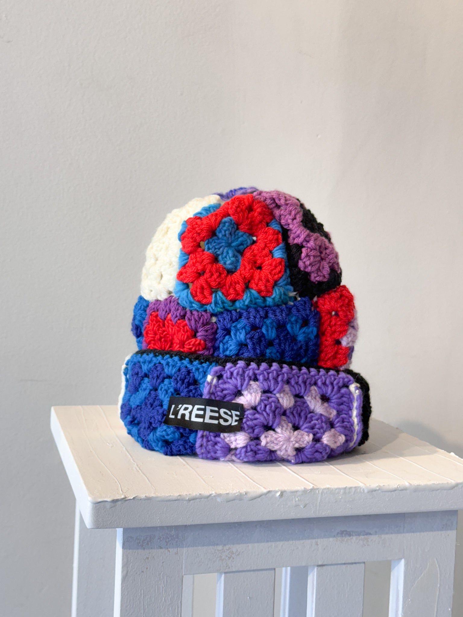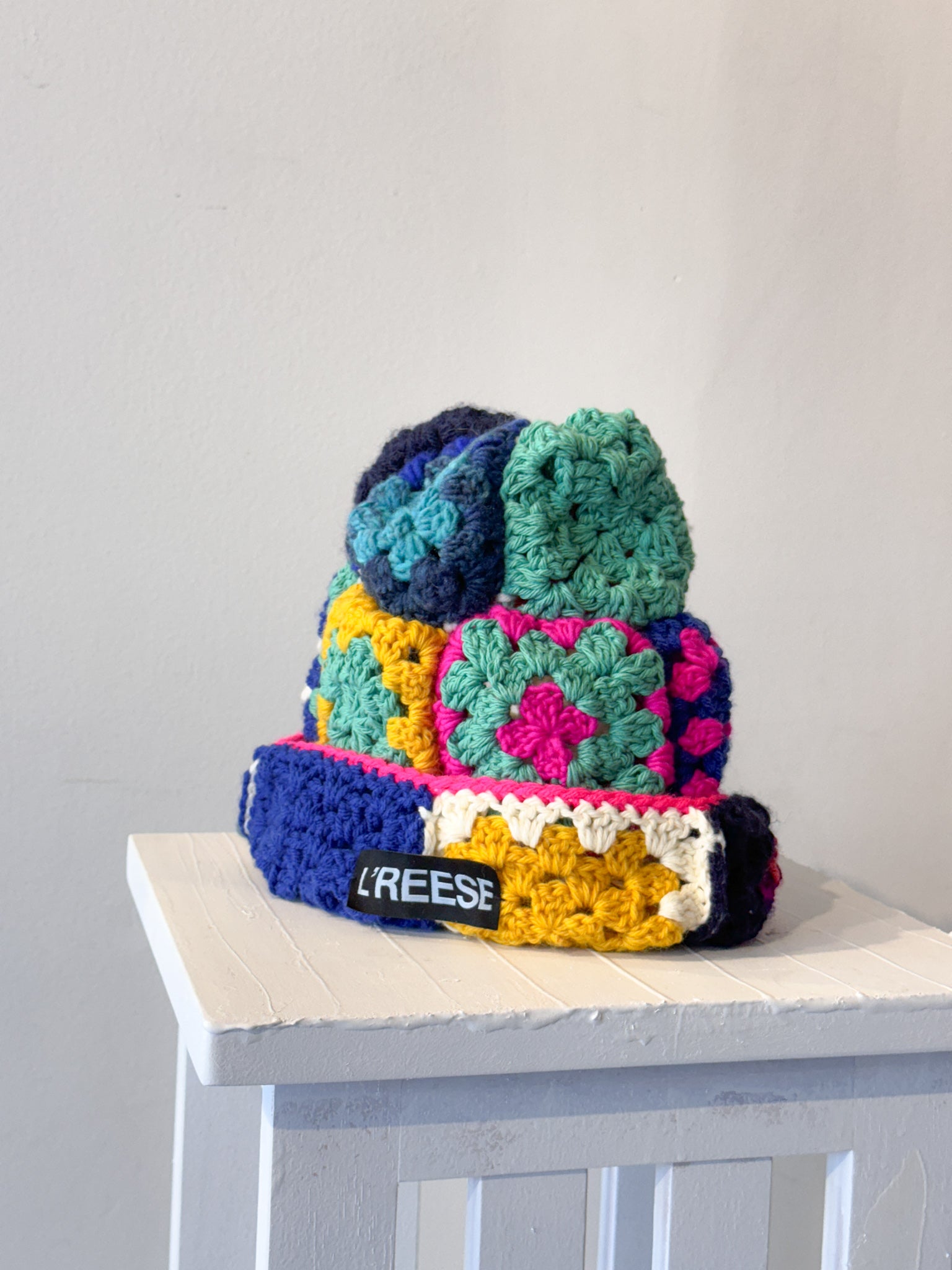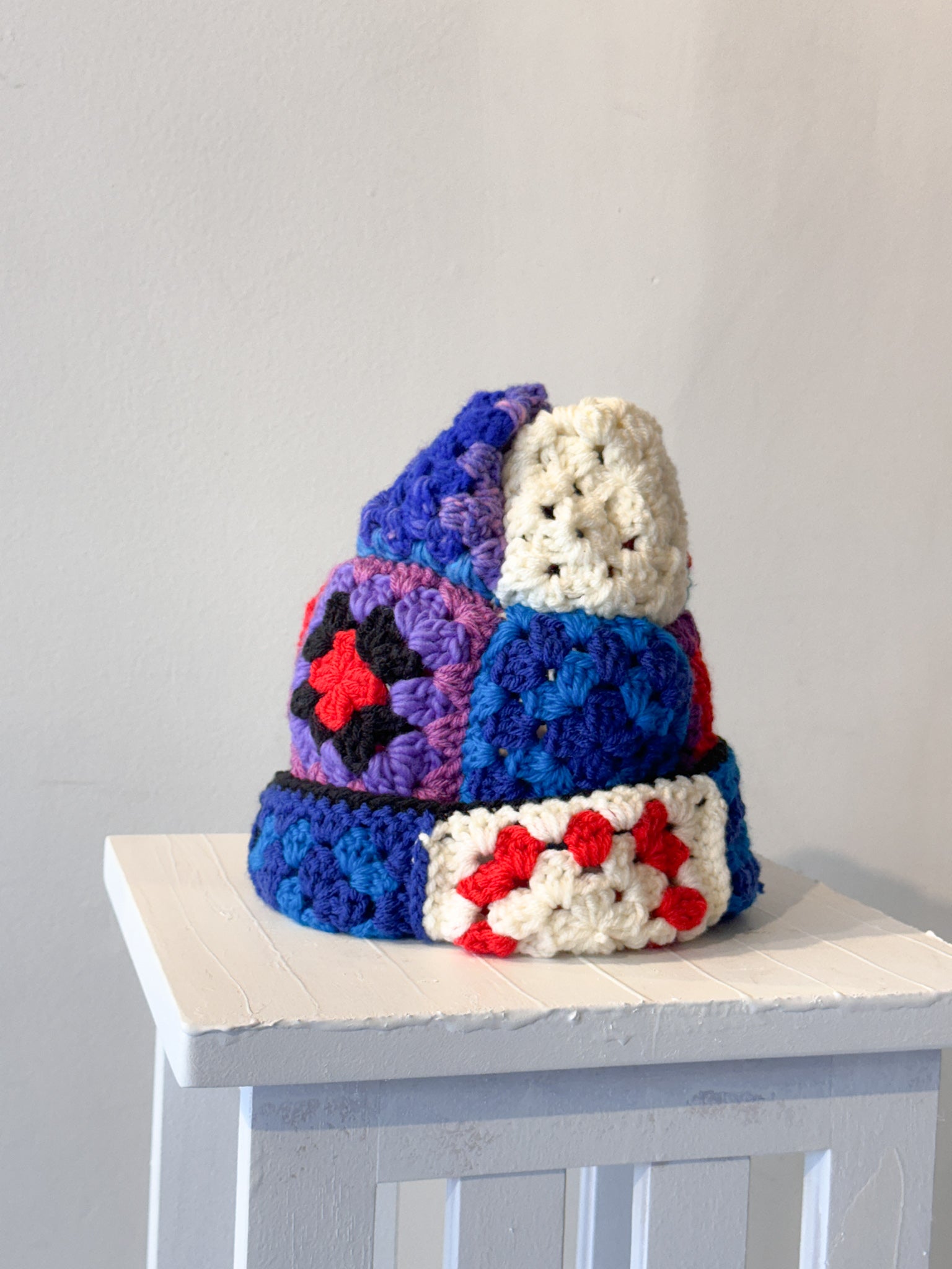 25 Crochet Granny Beanie (Magenta/Sky Blue)