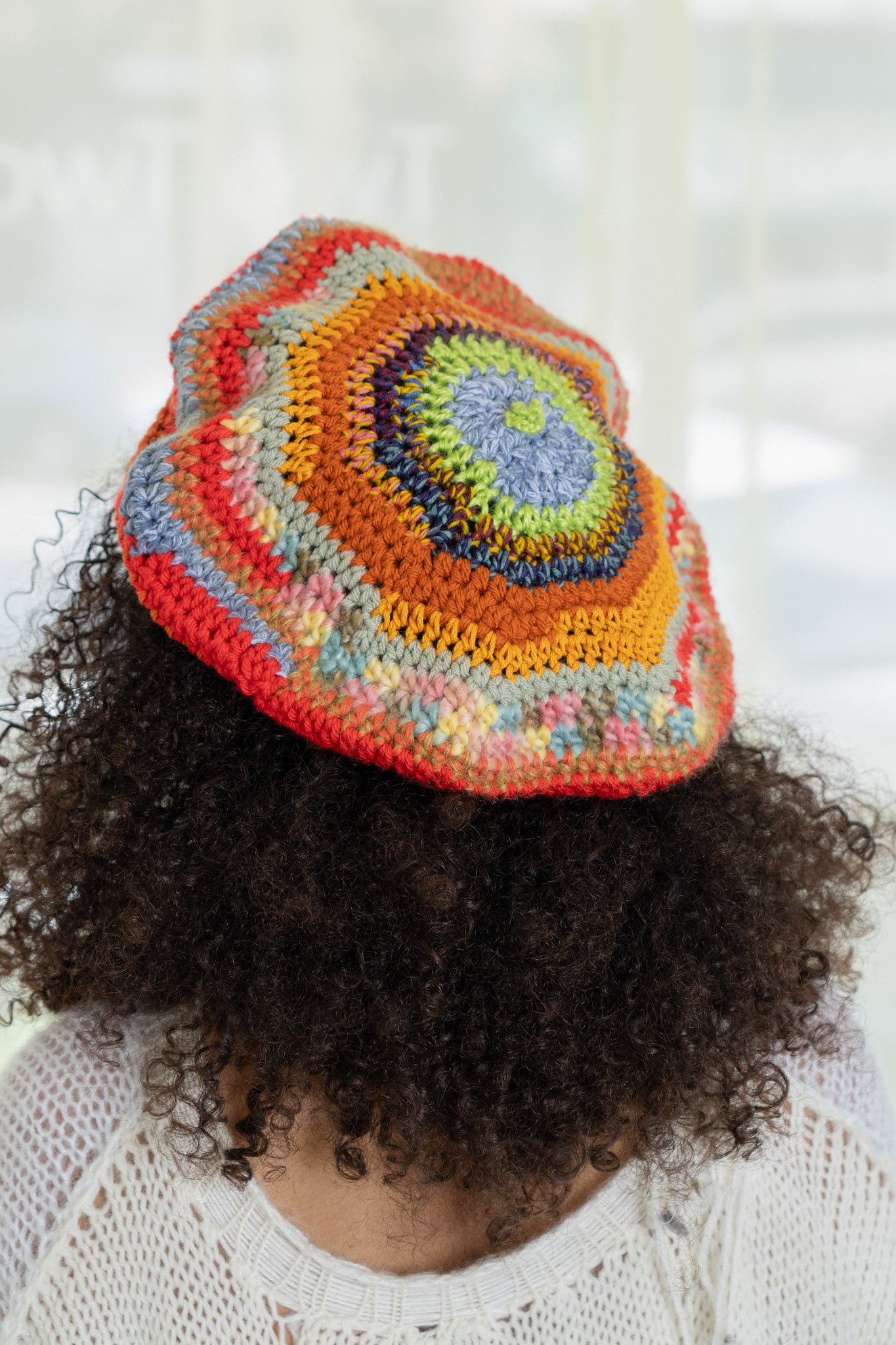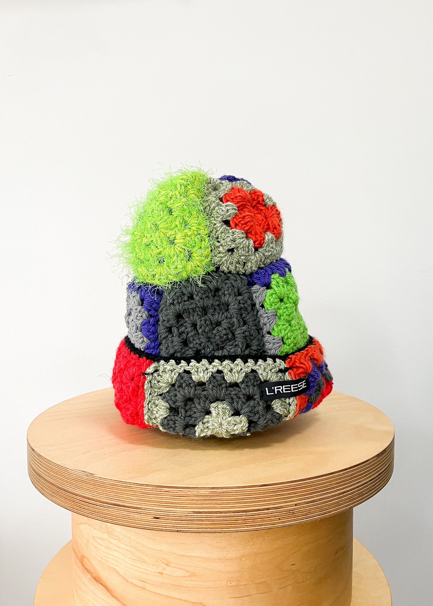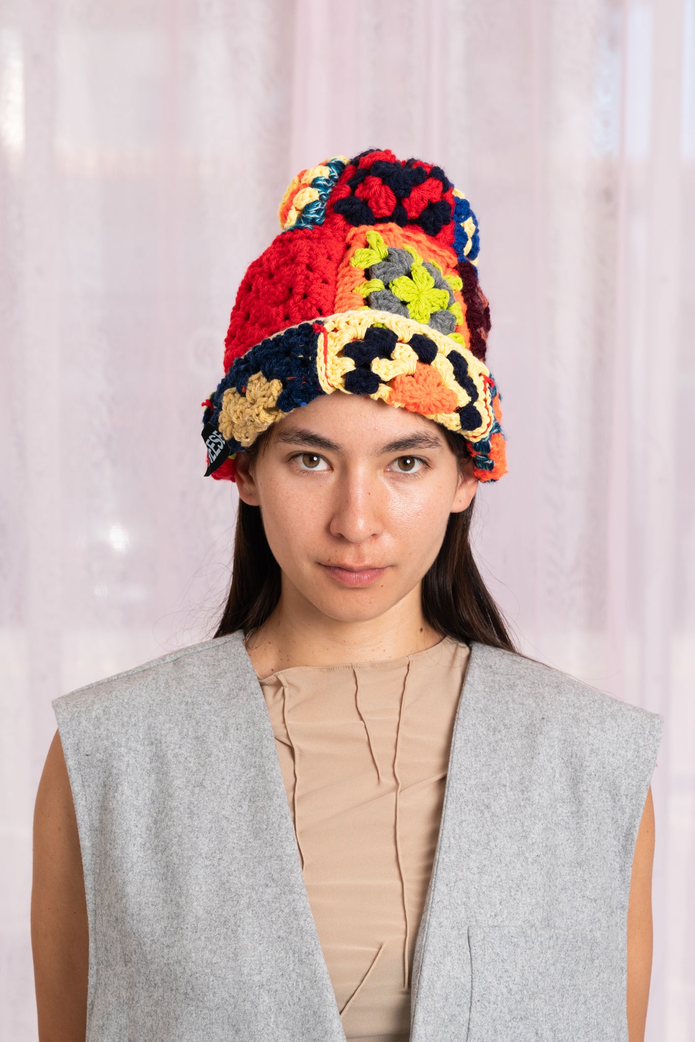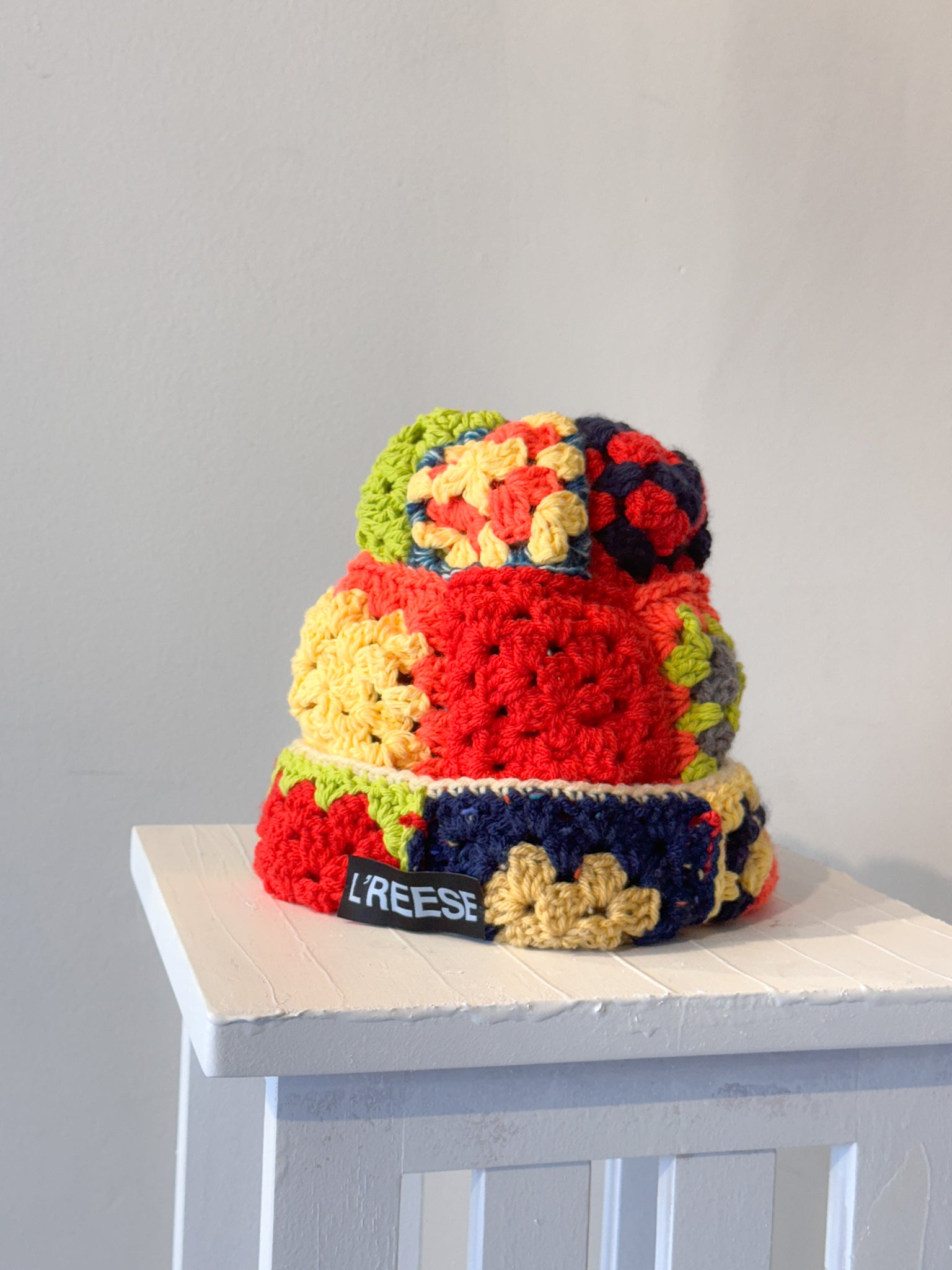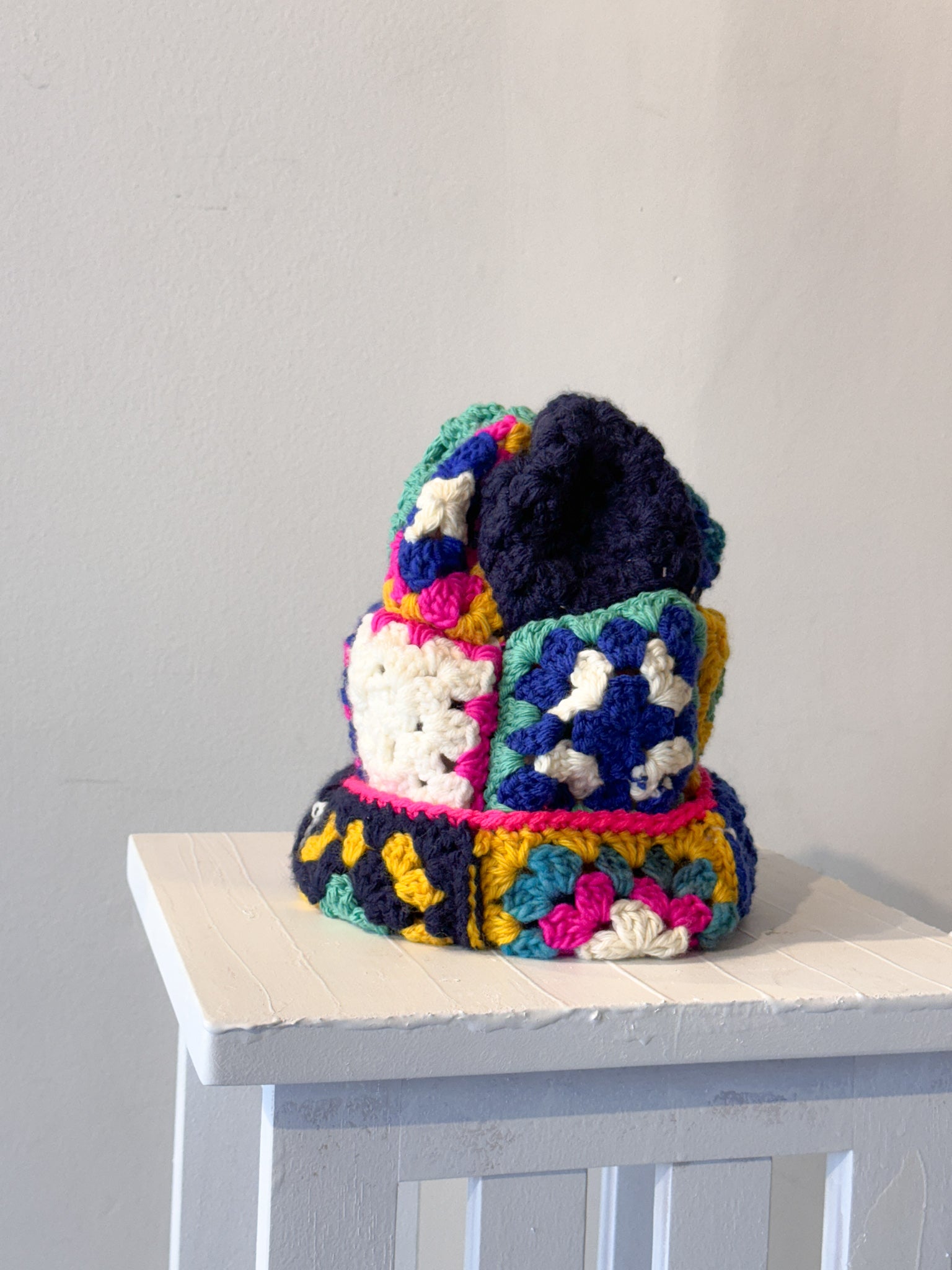 25 Crochet Granny Beanie (Magenta/Sky Blue)