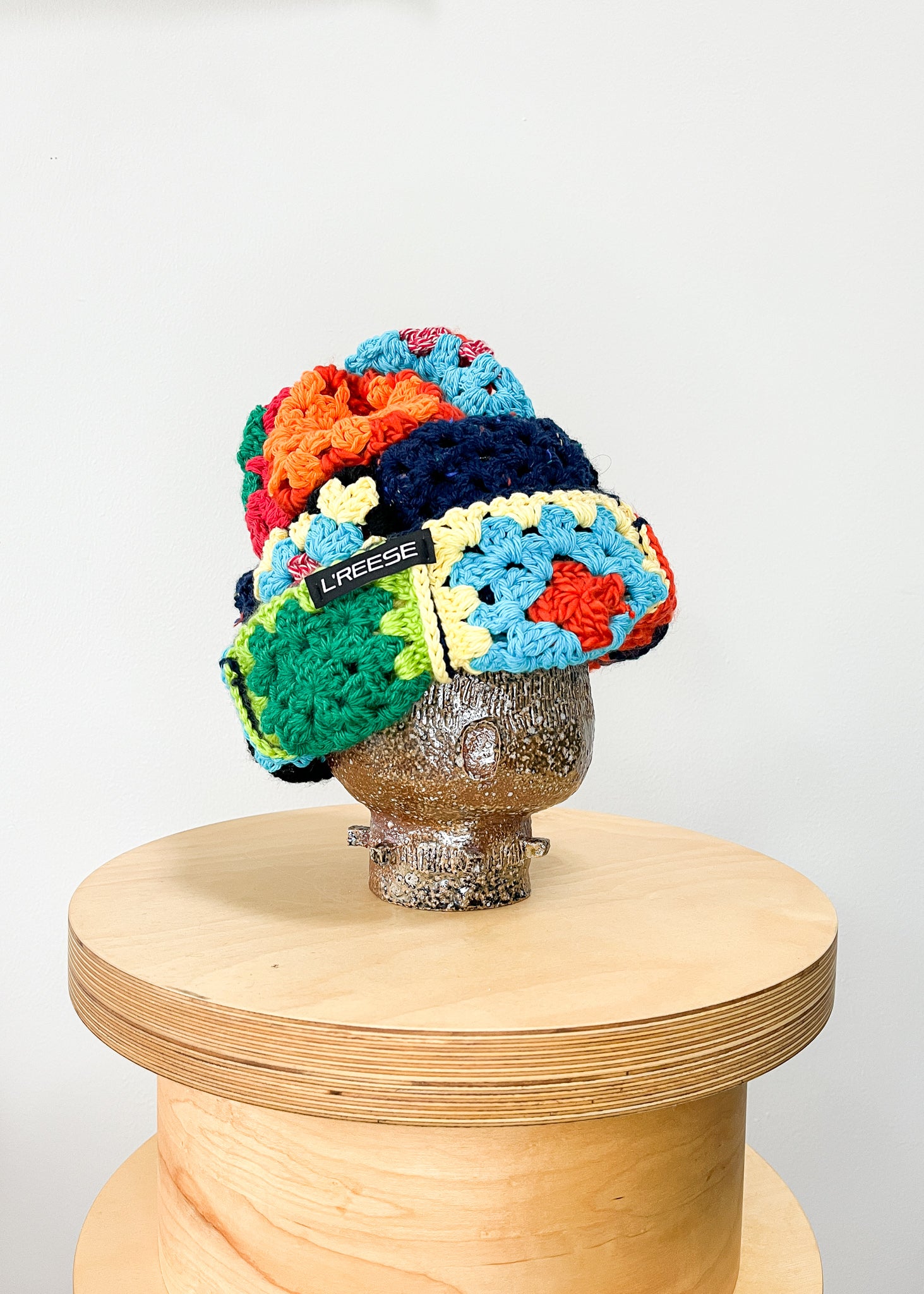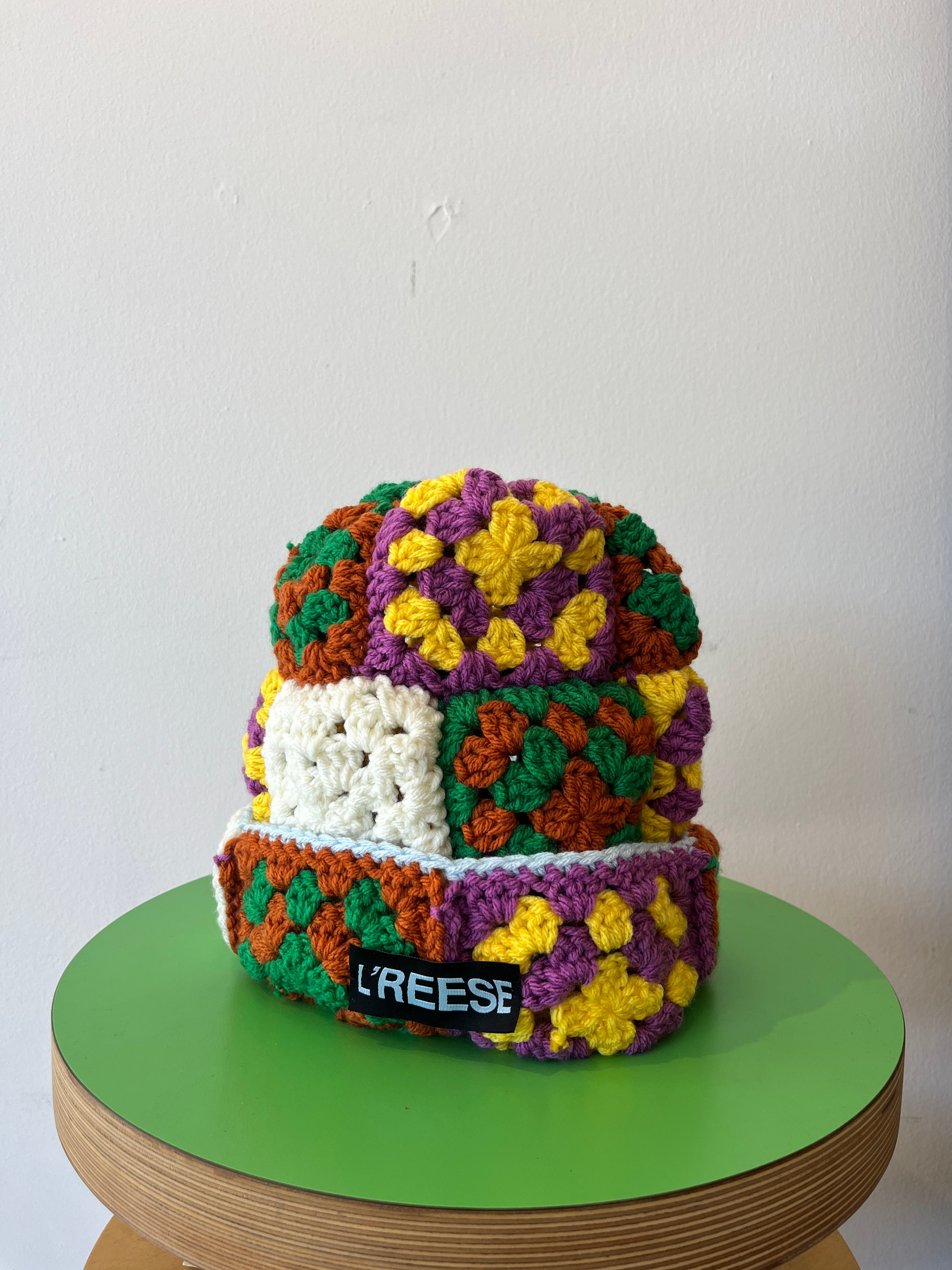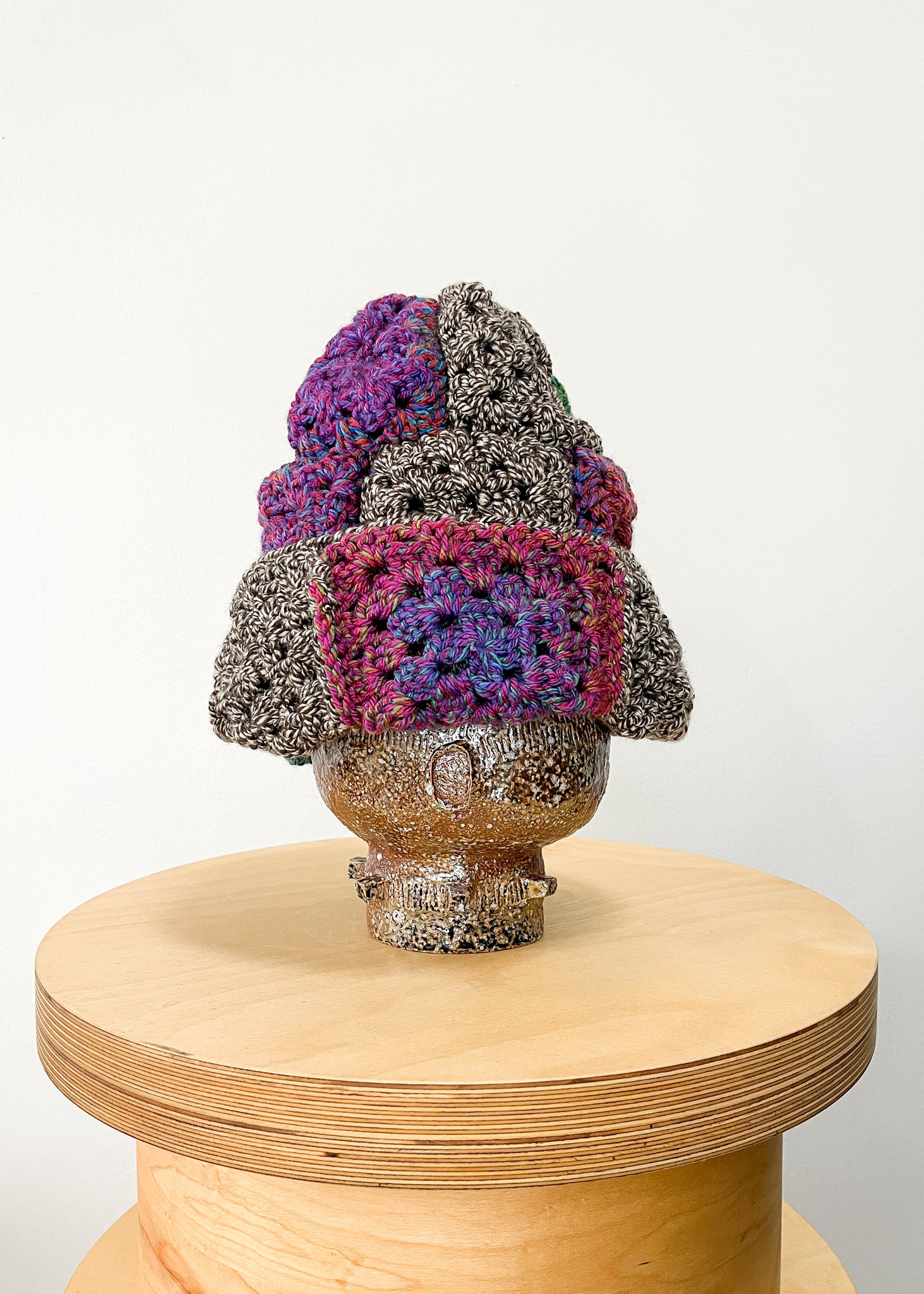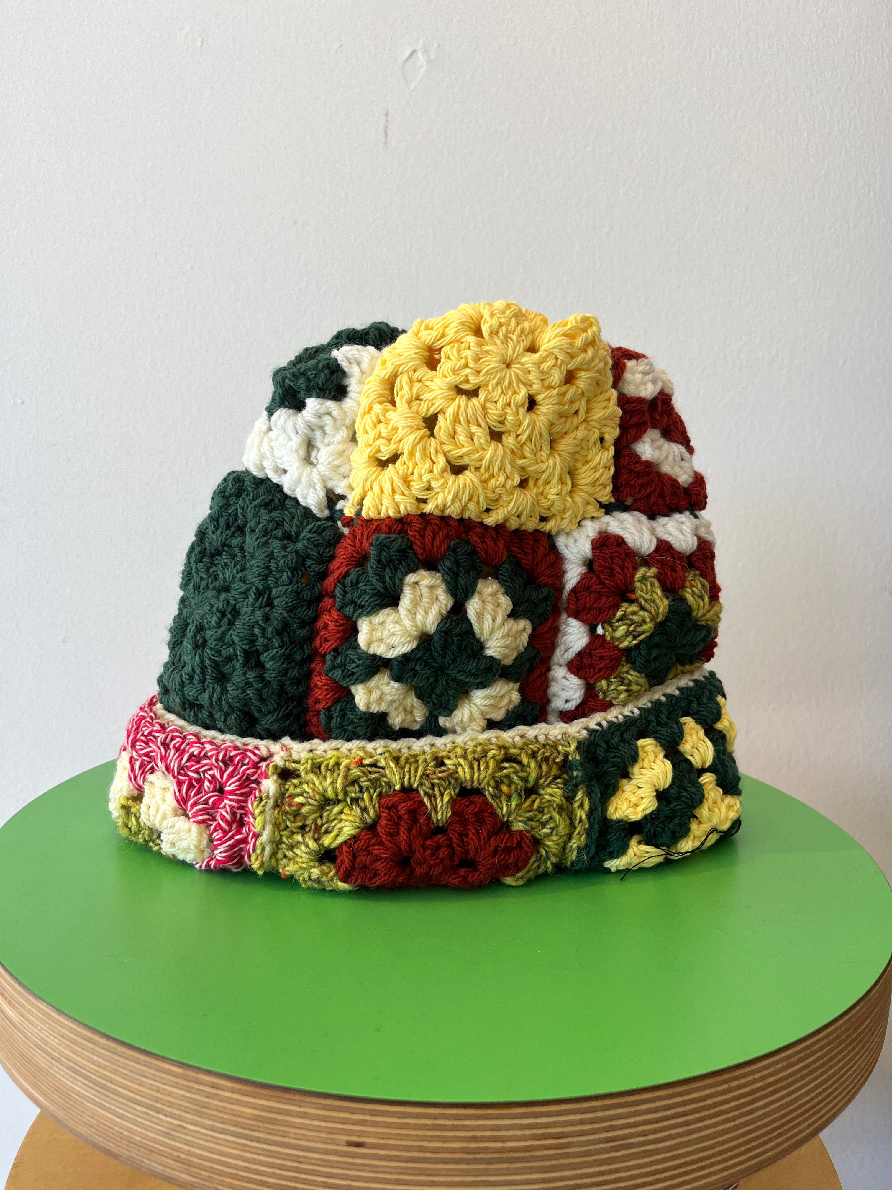 25 Crochet Granny Beanie (Magenta/Sky Blue)