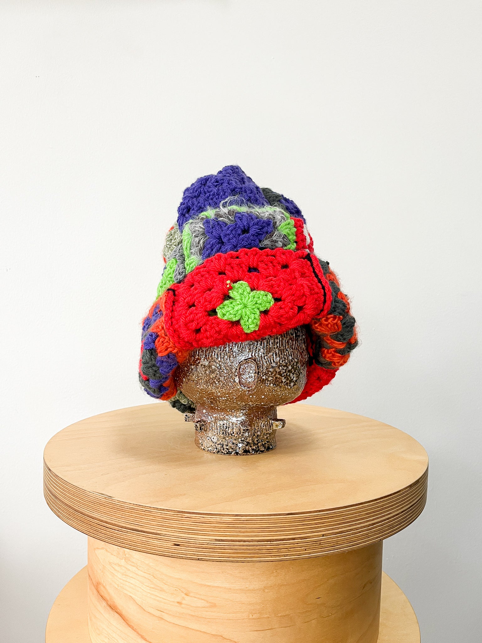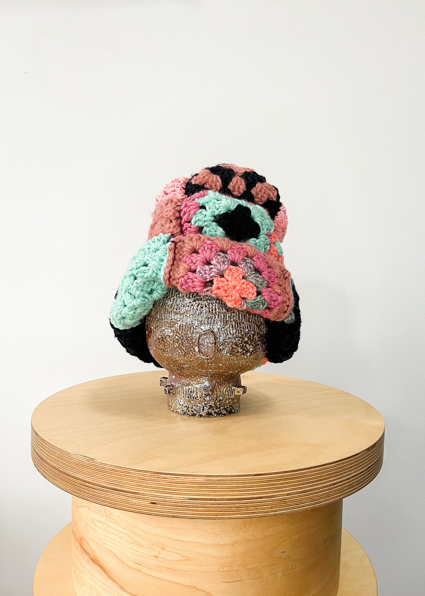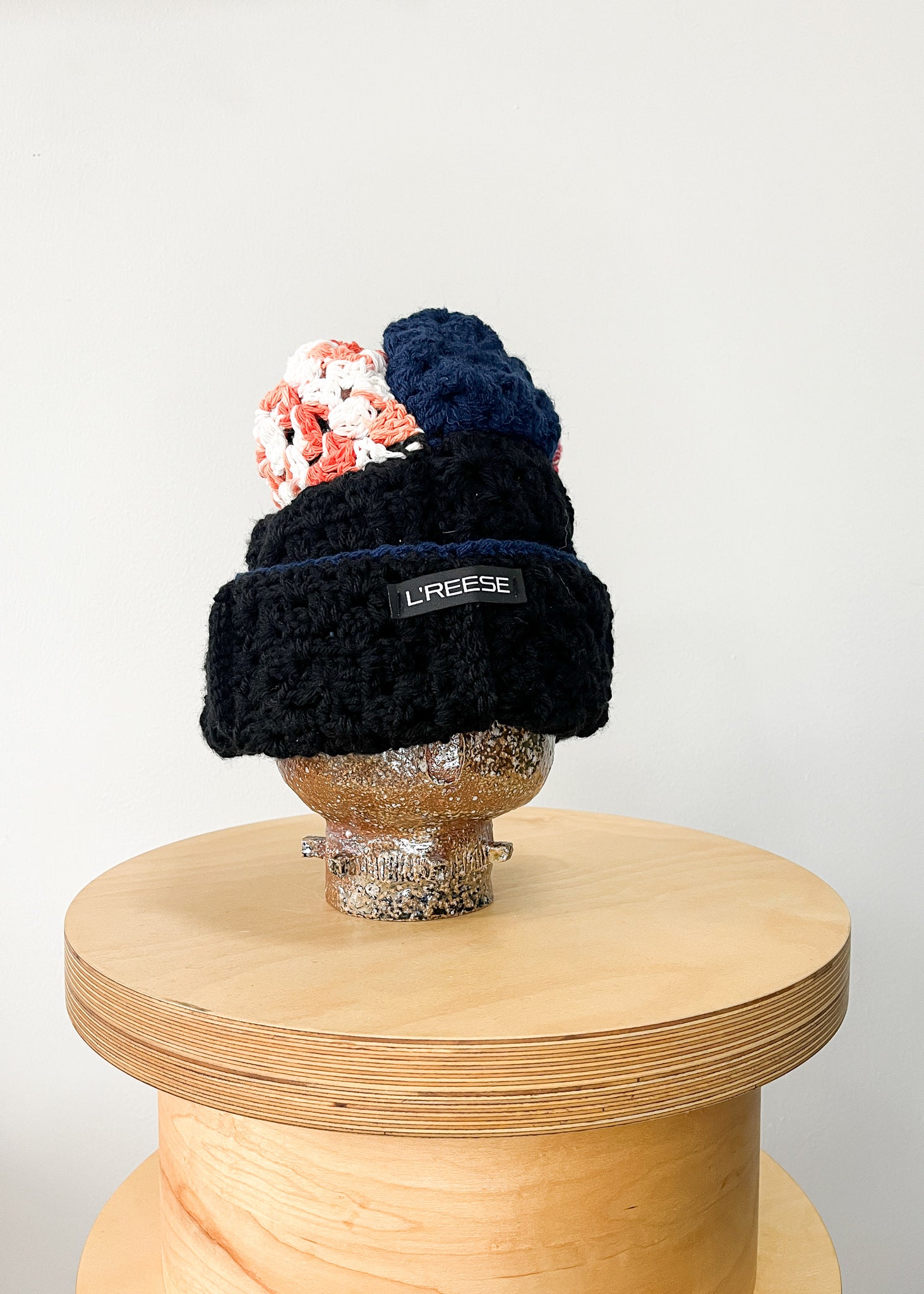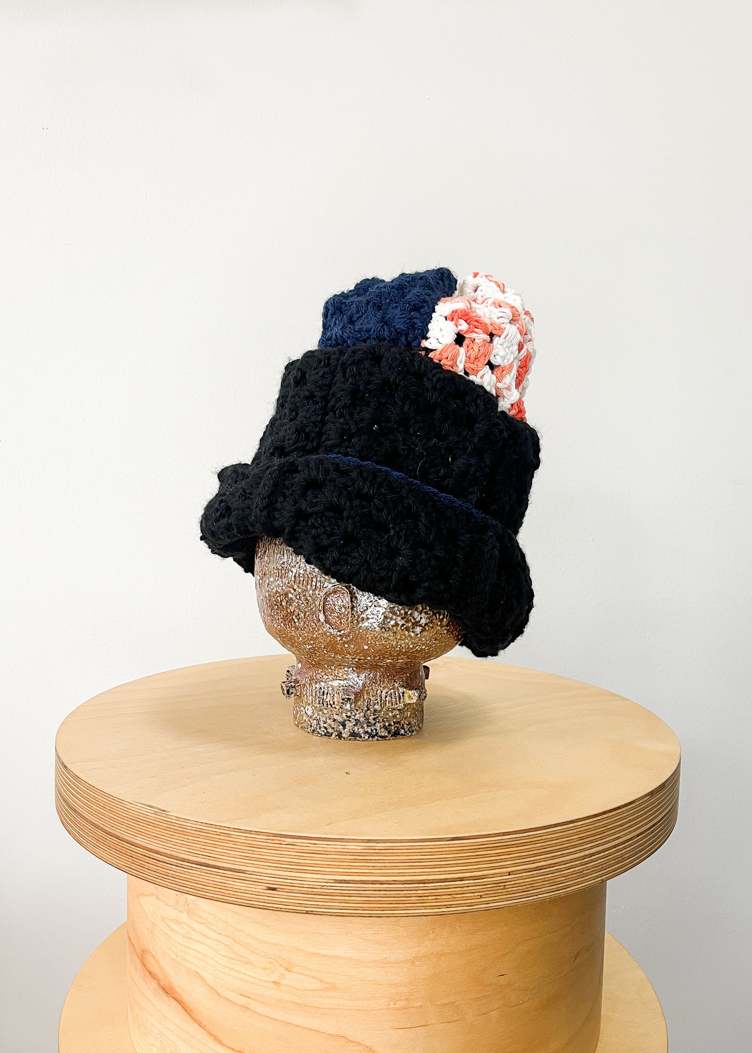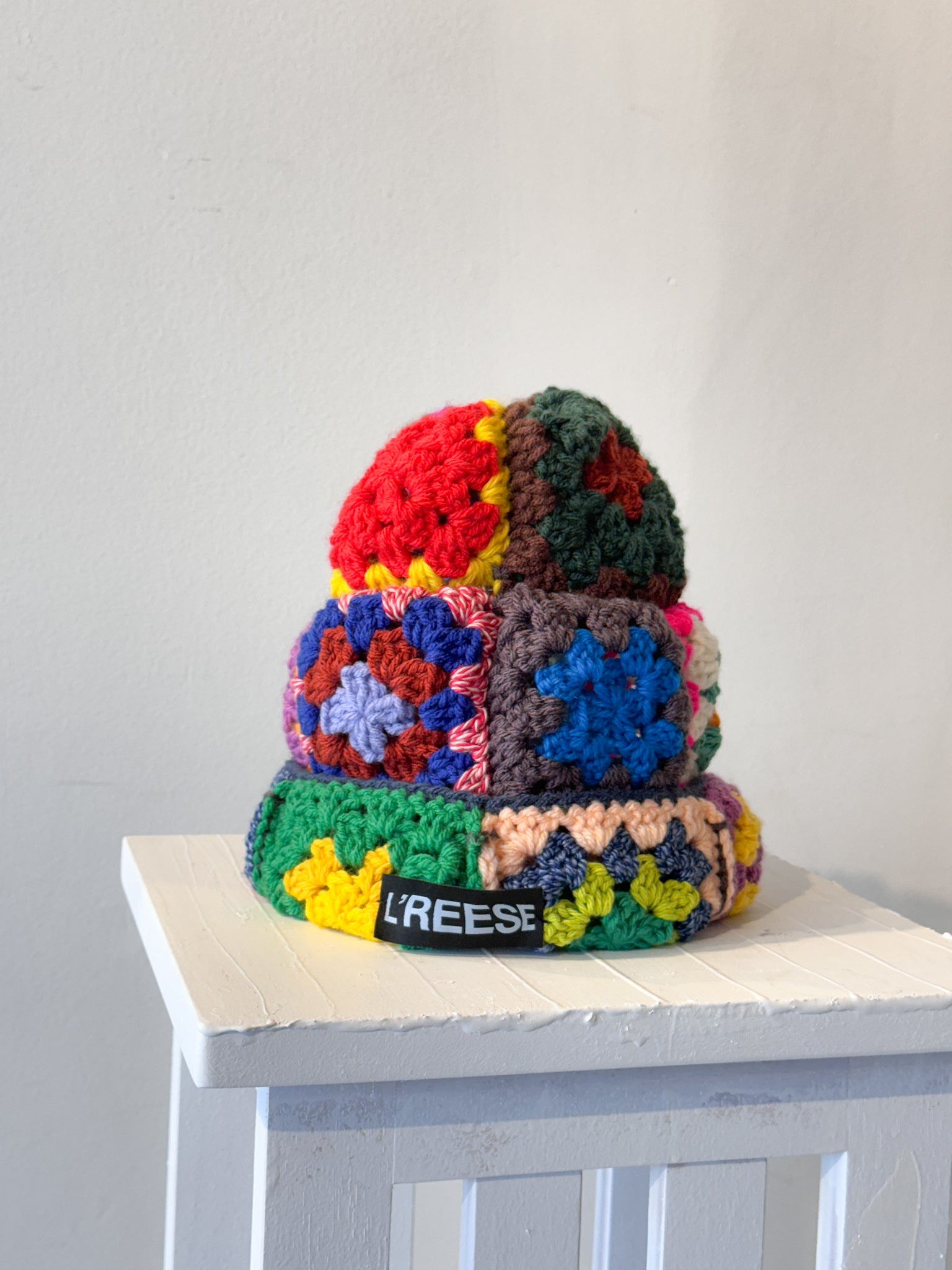 25 Crochet Granny Beanie (Magenta/Sky Blue)