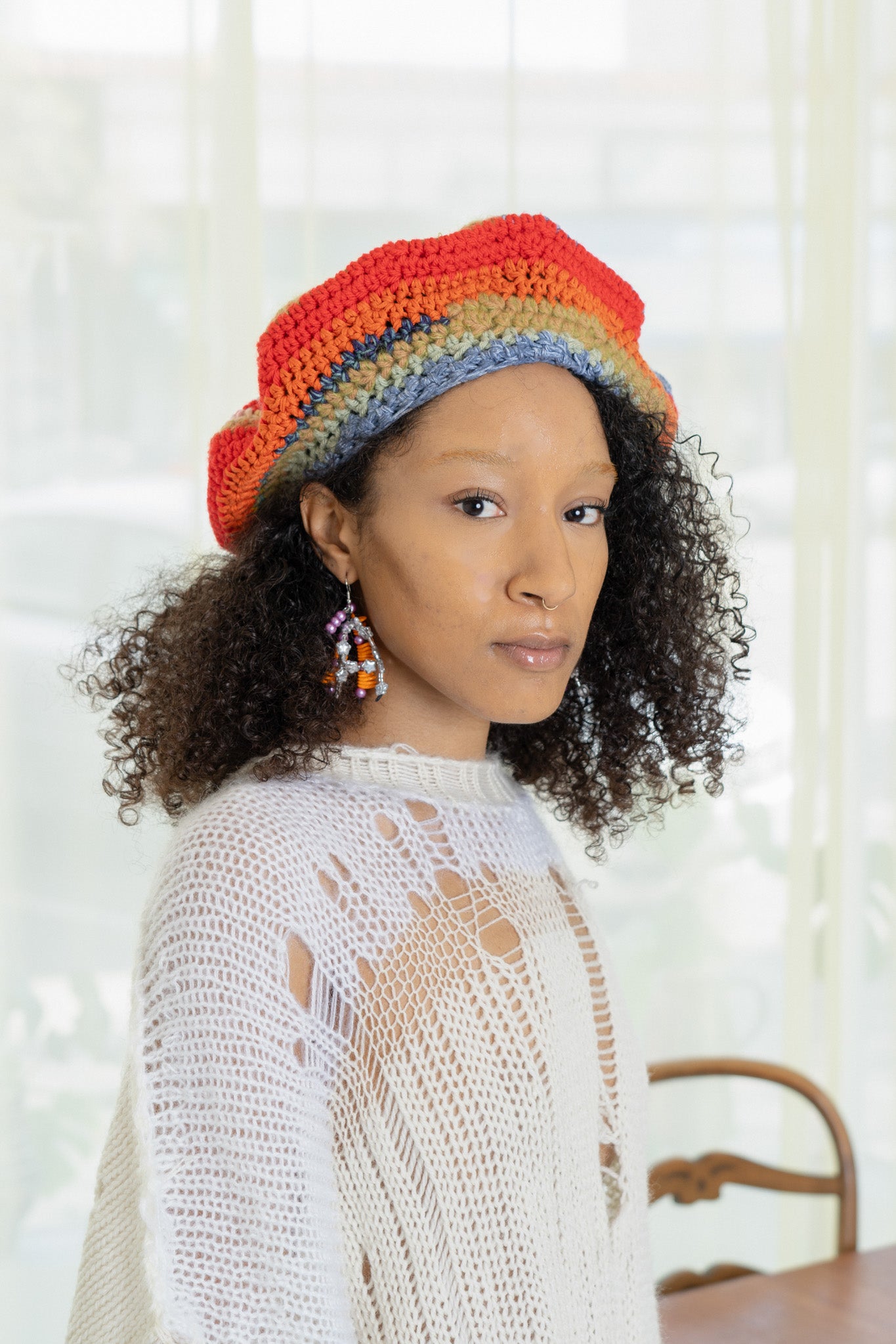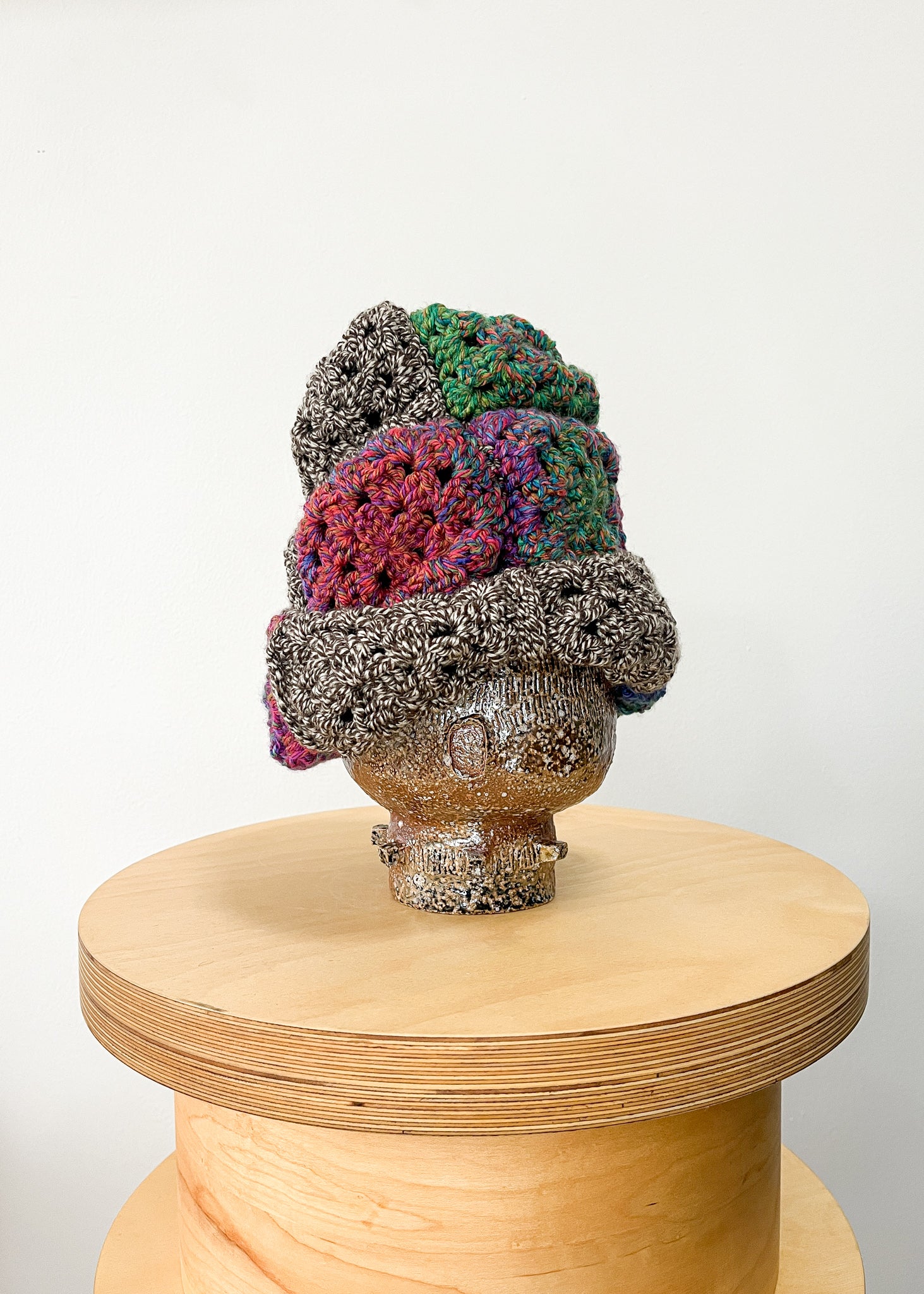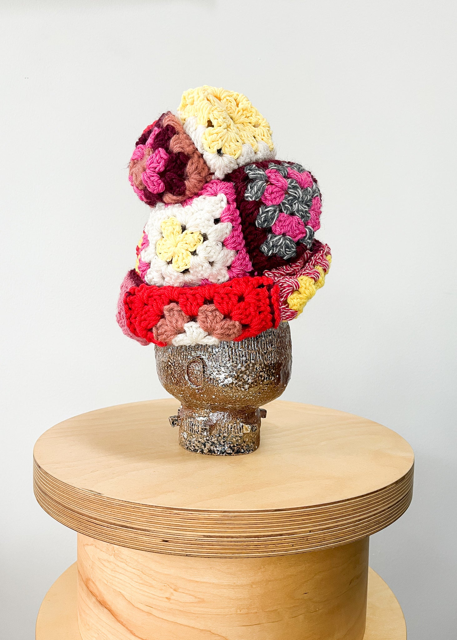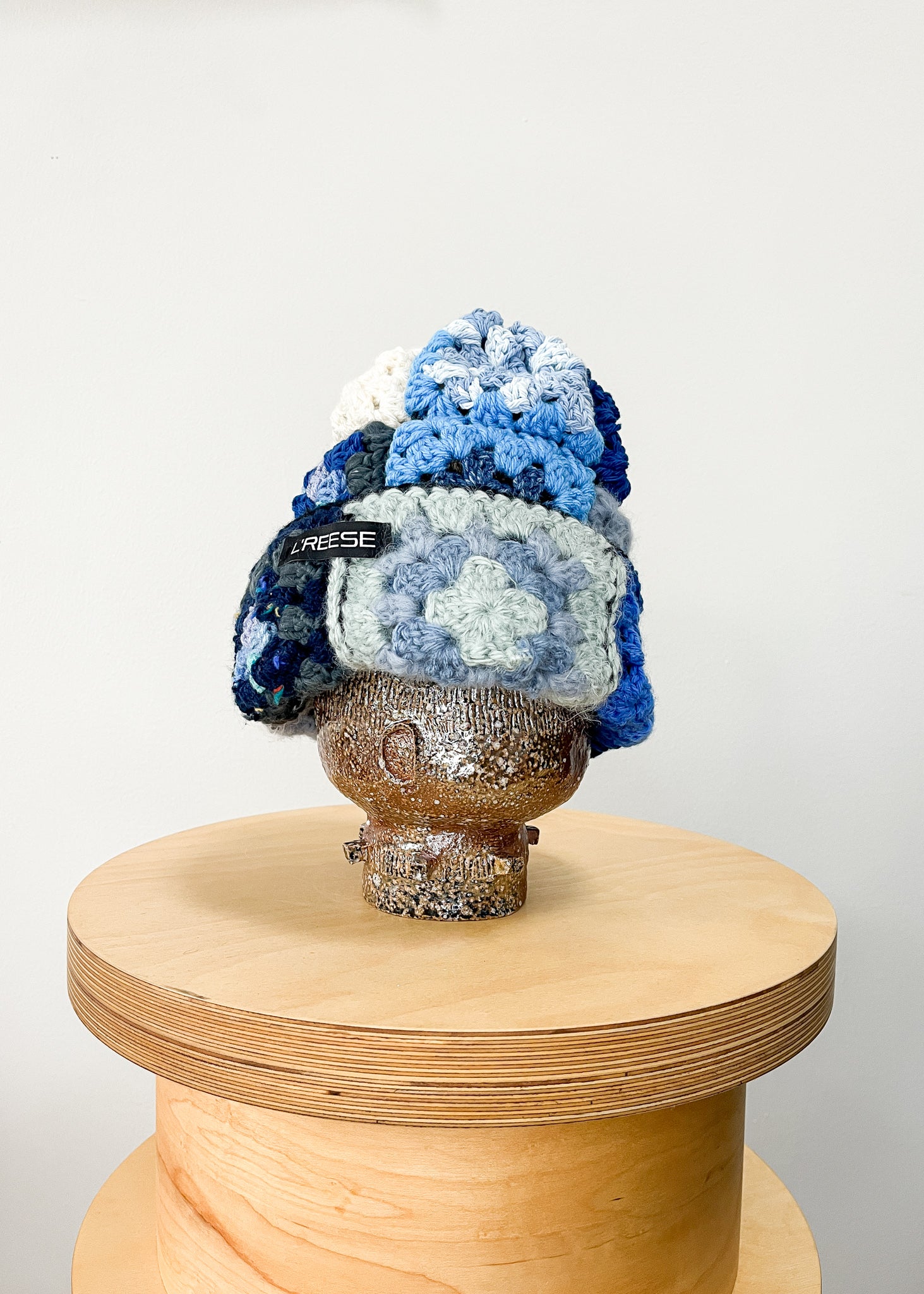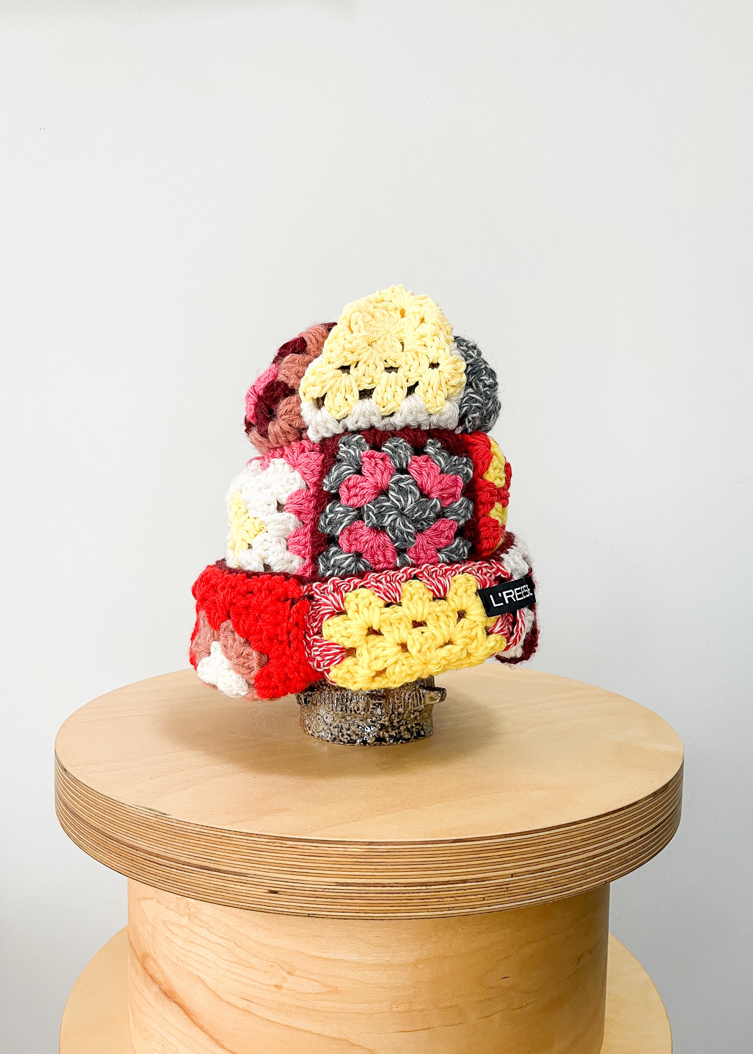 25 Crochet Granny Beanie (Magenta/Sky Blue)