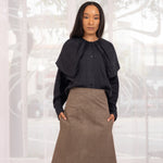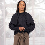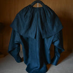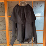 Washed black slouchy button up shirt made from 100% French linen woven in Japan. Oversized pleated collar.