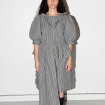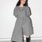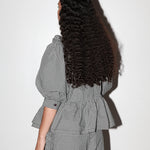 Crafted in plaid cotton poplin, this top features puff sleeves with buttoned cuffs, a ruffle detail along the front chest, a double peplum with an exaggerated panel, and a center-back zipper closure.