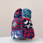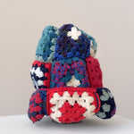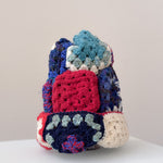 Primarily 100% wool yarn with some cotton yarns. Sewn together with acrylic yarn.