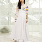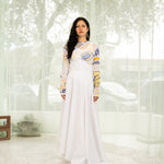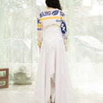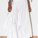 Paneled maxi skirt with high waist "corset" in all white deadstock cotton poplin.