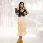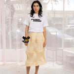 Cross-pleated skirt with a sculpted ripple wavy silhouette and elasticated waistband. Sheer recycled poly in a silky finishing.