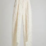The "Church" trousers are Yohei Ohno's signature pant silhouette of the season, with this special edition in a jacquard that gives off a fur-like appearance. The style is designed so that the toe of the shoes peek out from the slit at the overhanging square hem, named as such as the design resembles the entrance of a church. The shape is slightly thicker, straight silhouette.