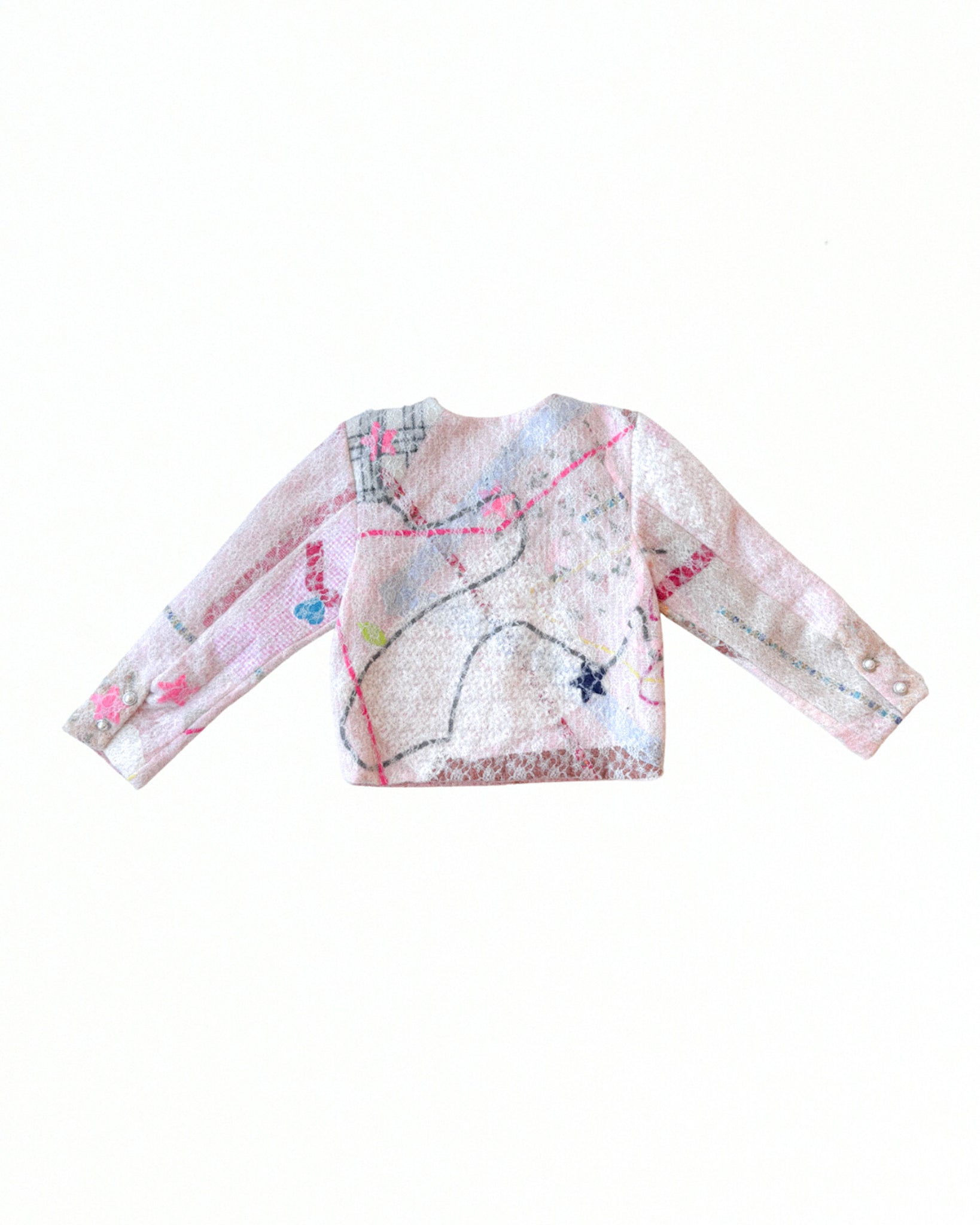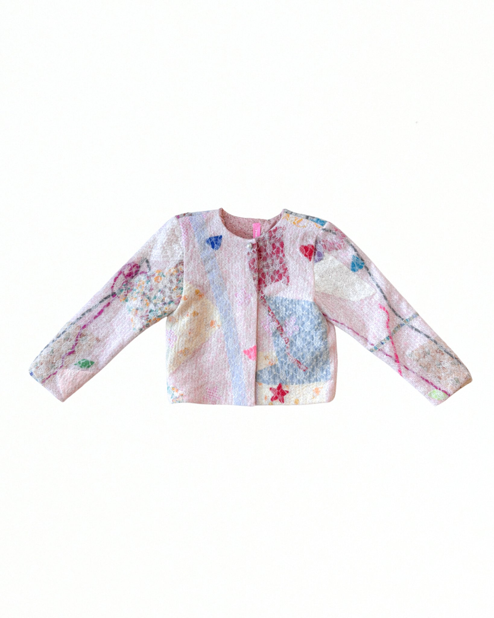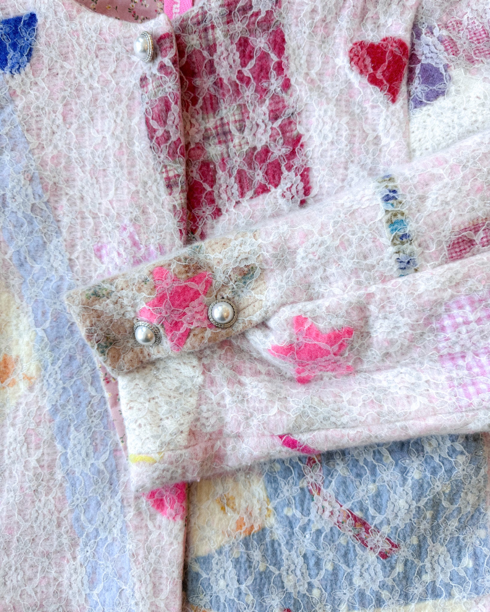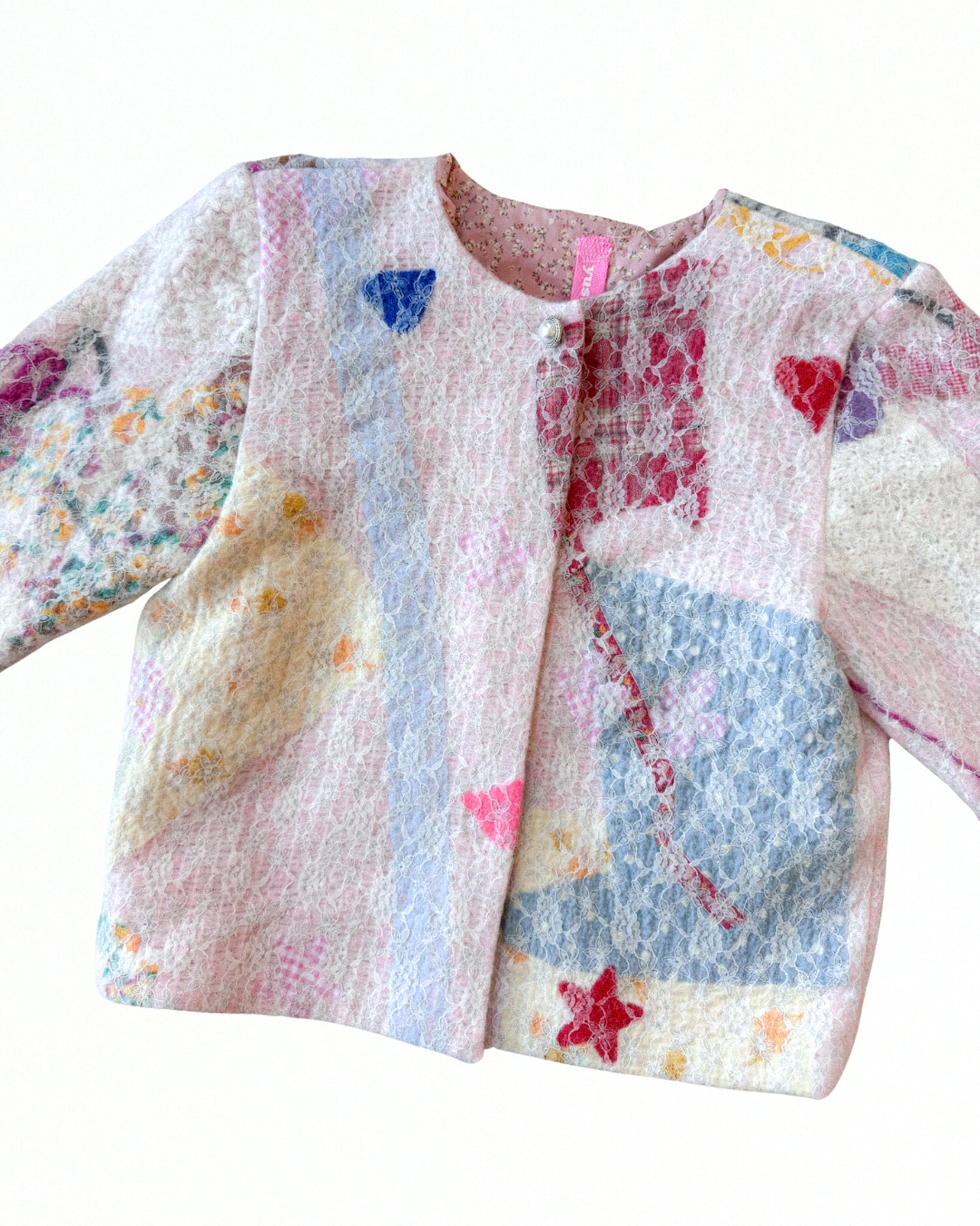 Lightweight wool and lace felted crop jacket, full lined. Ornate button closures.