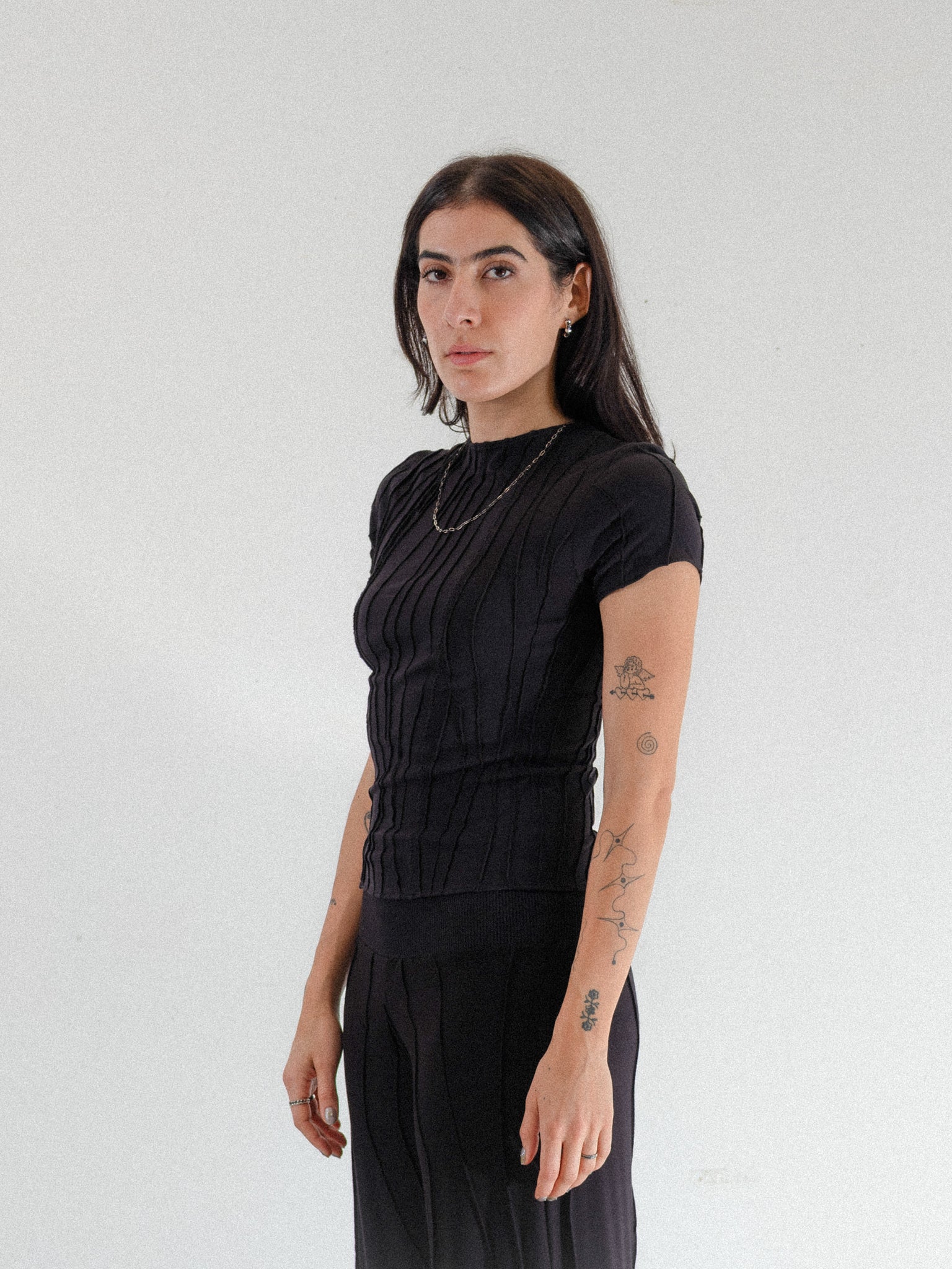 Mariola Homoncik is a Cracow/Poland based knitwear and scraps designer. Each piece employs an asymmetric design with a unique suture and seam formation. Mariola’s work explores the relationship between the human body and fabric drape, influenced by fabric 'cut-offs' to reimagine excess materials into new wearable forms that are feminine and elegant. From her local studio, she personally designs and produces each design for the label.